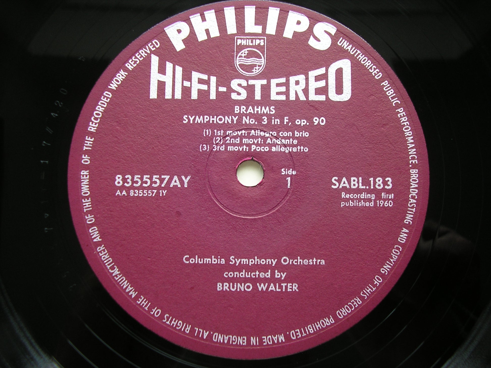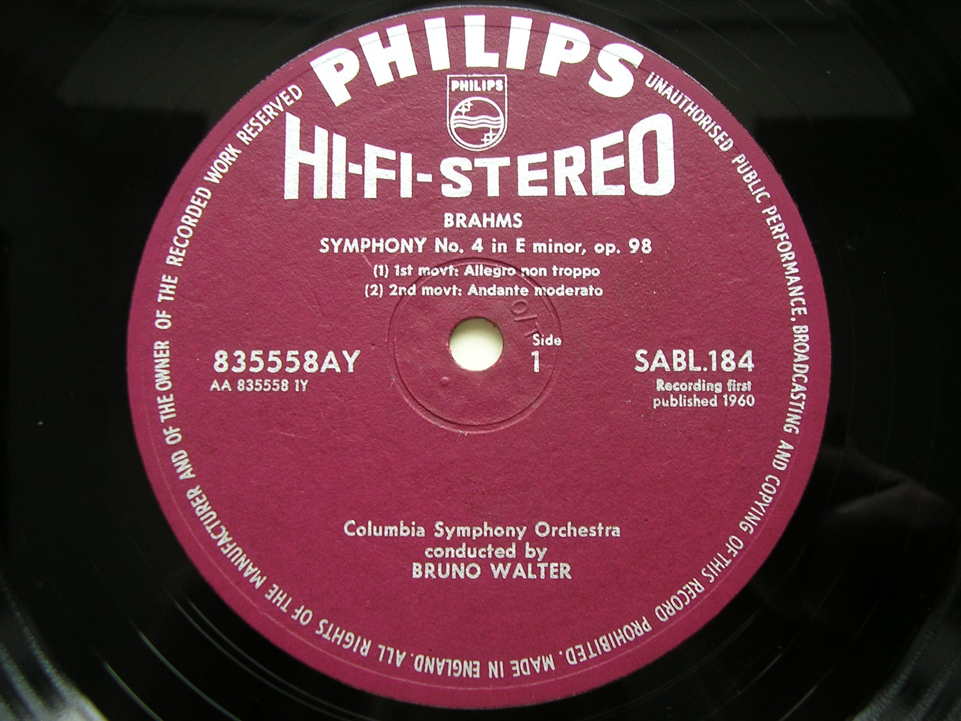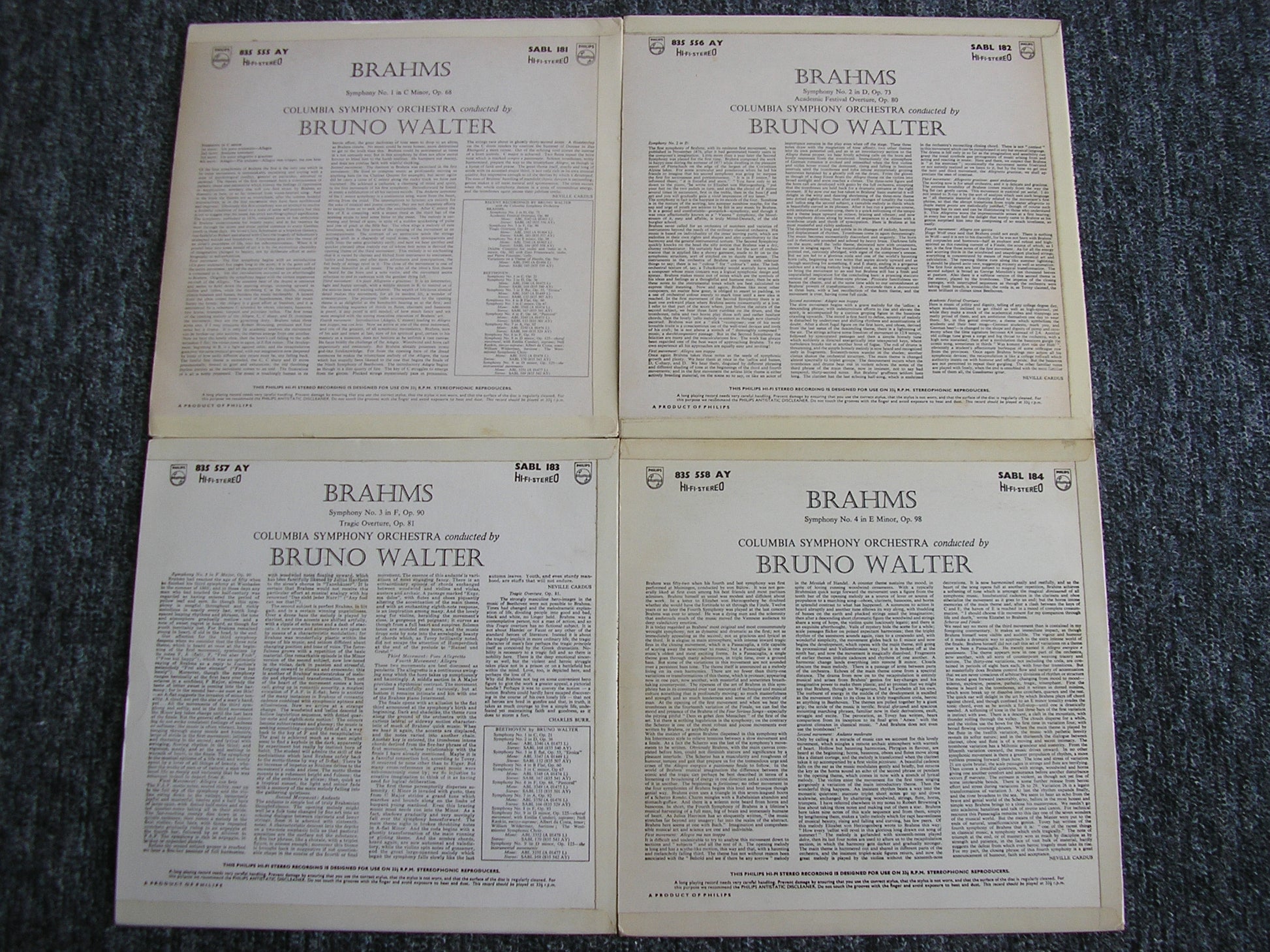 SABL 181 - 184  BRAHMS: THE FOUR SYMPHONIES / TRAGIC OVERTURE / ACADEMIC FESTIVAL OVERTURE    BRUNO WALTER / COLUMBIA SYMPHONY ORCHESTRA