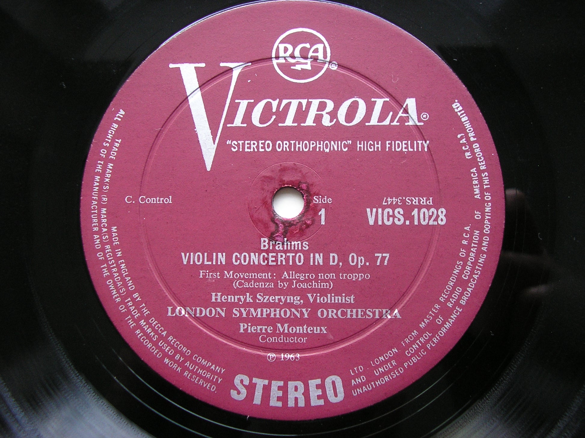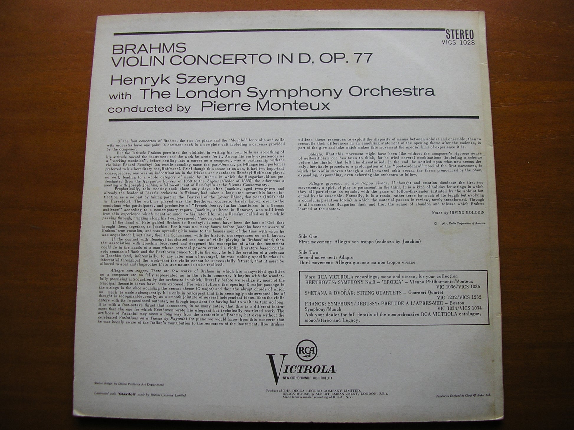 VICS 1028  BRAHMS: VIOLIN CONCERTO     HENRYK SZERYNG / LONDON SYMPHONY ORCHESTRA / PIERRE MONTEUX