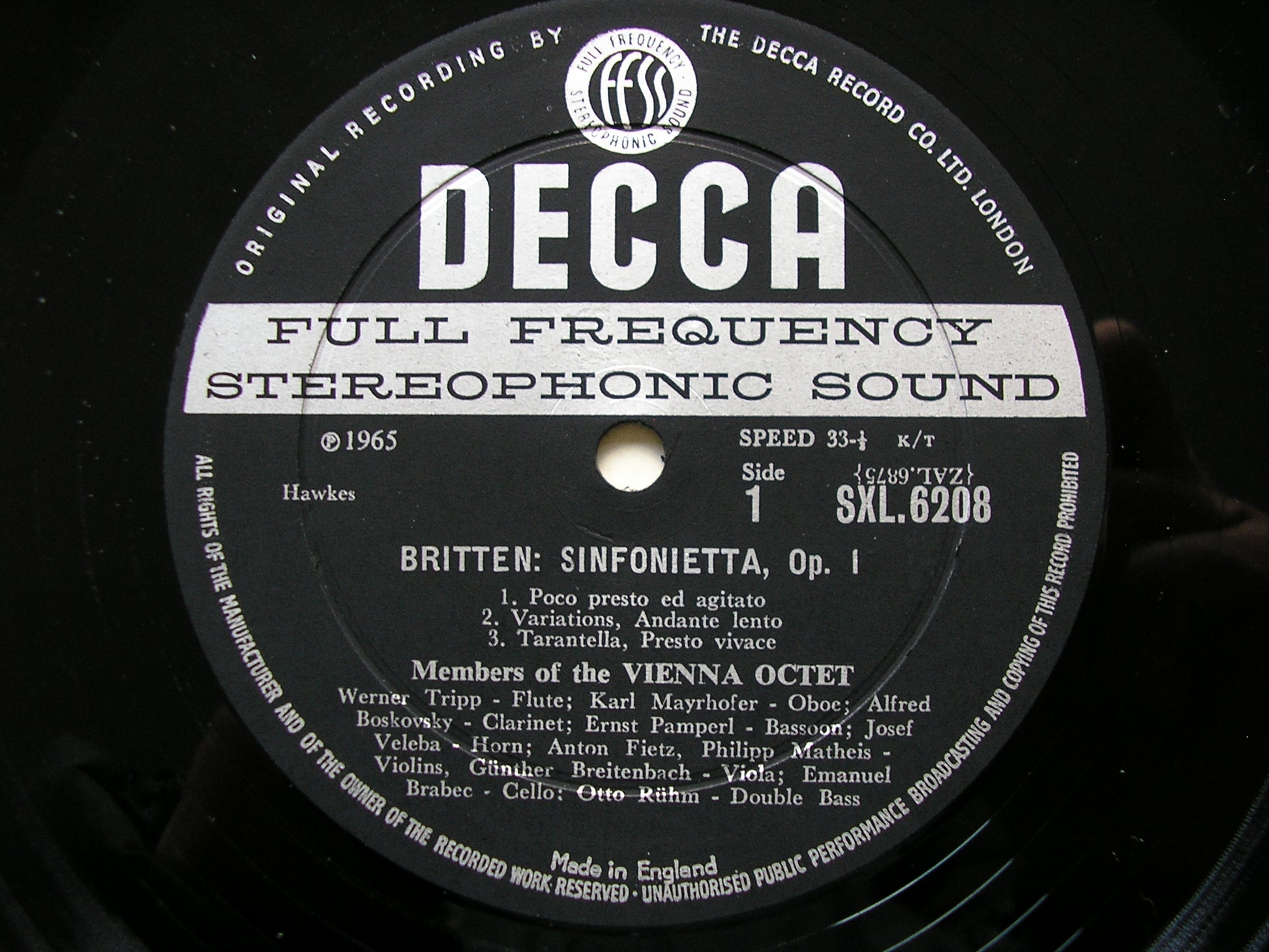 SXL 6208  BRITTEN: SINFONIETTA Op. 1 / HINDEMITH: OCTET     VIENNA OCTET