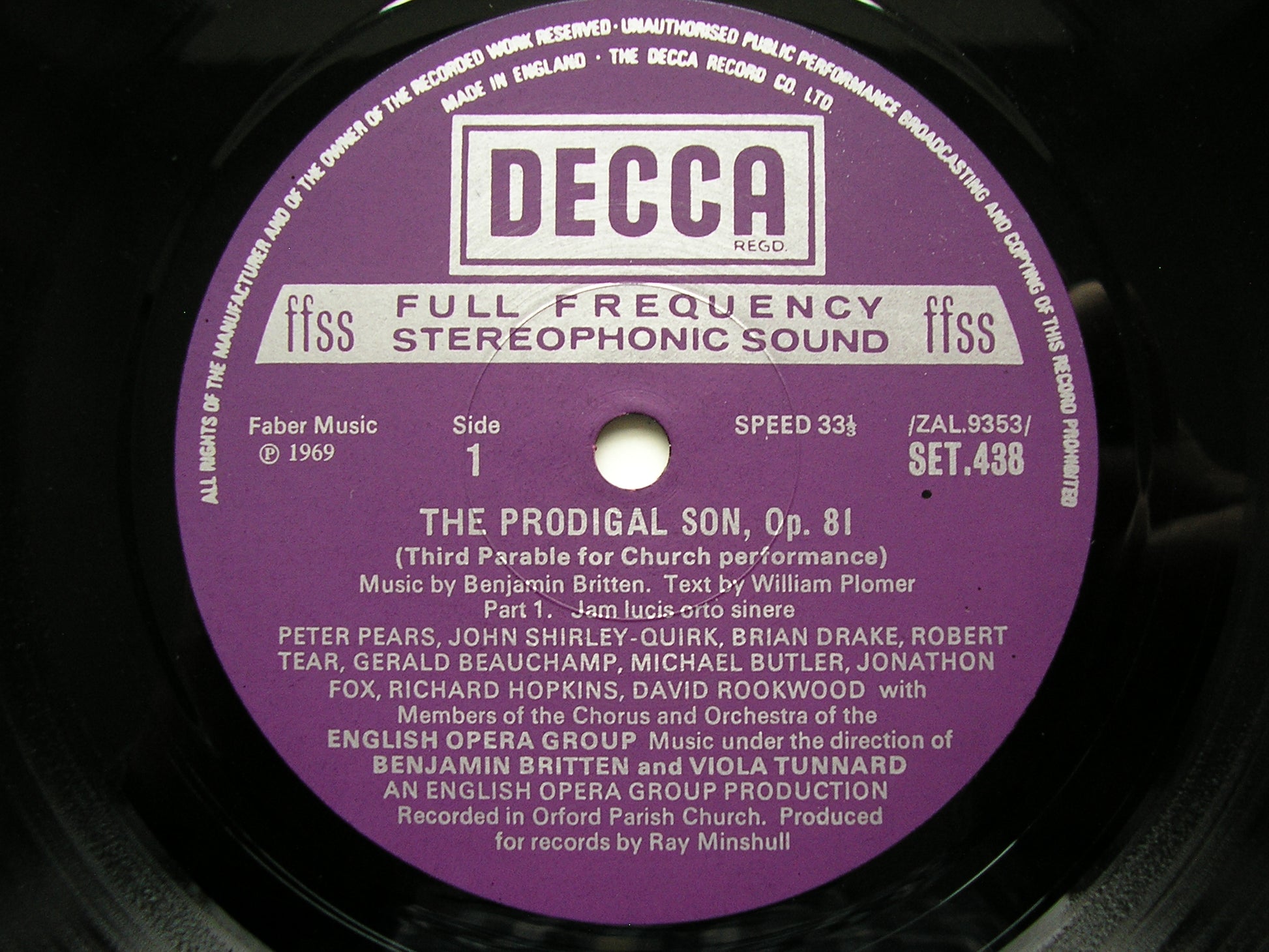 BRITTEN: THE PRODIGAL SON SOLOISTS / ENGLISH OPERA GROUP / TUNNARD / BRITTEN SET 438
