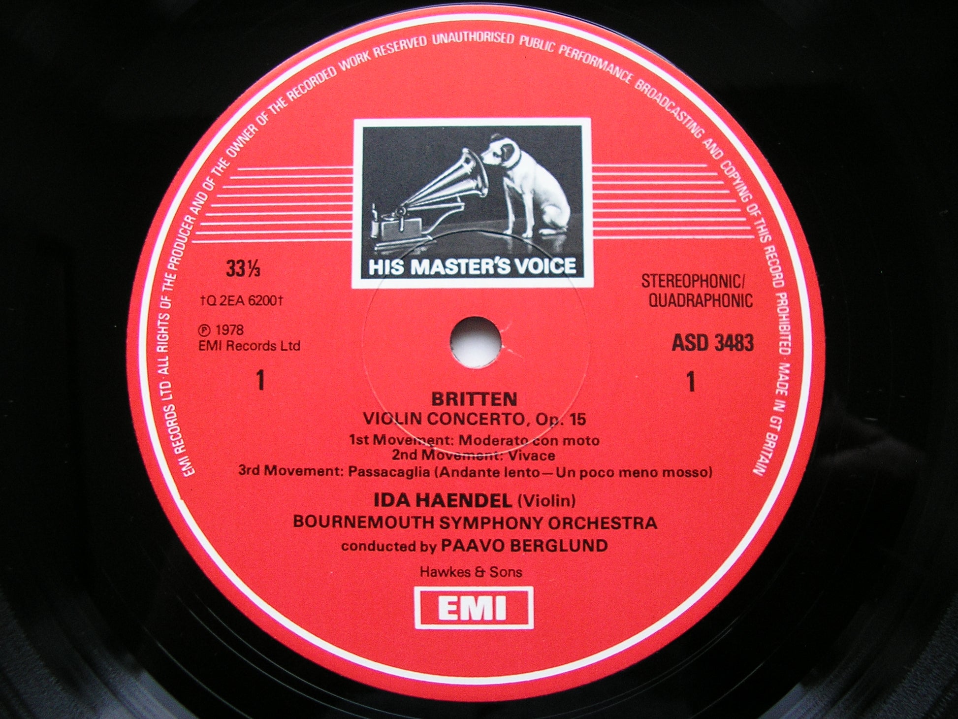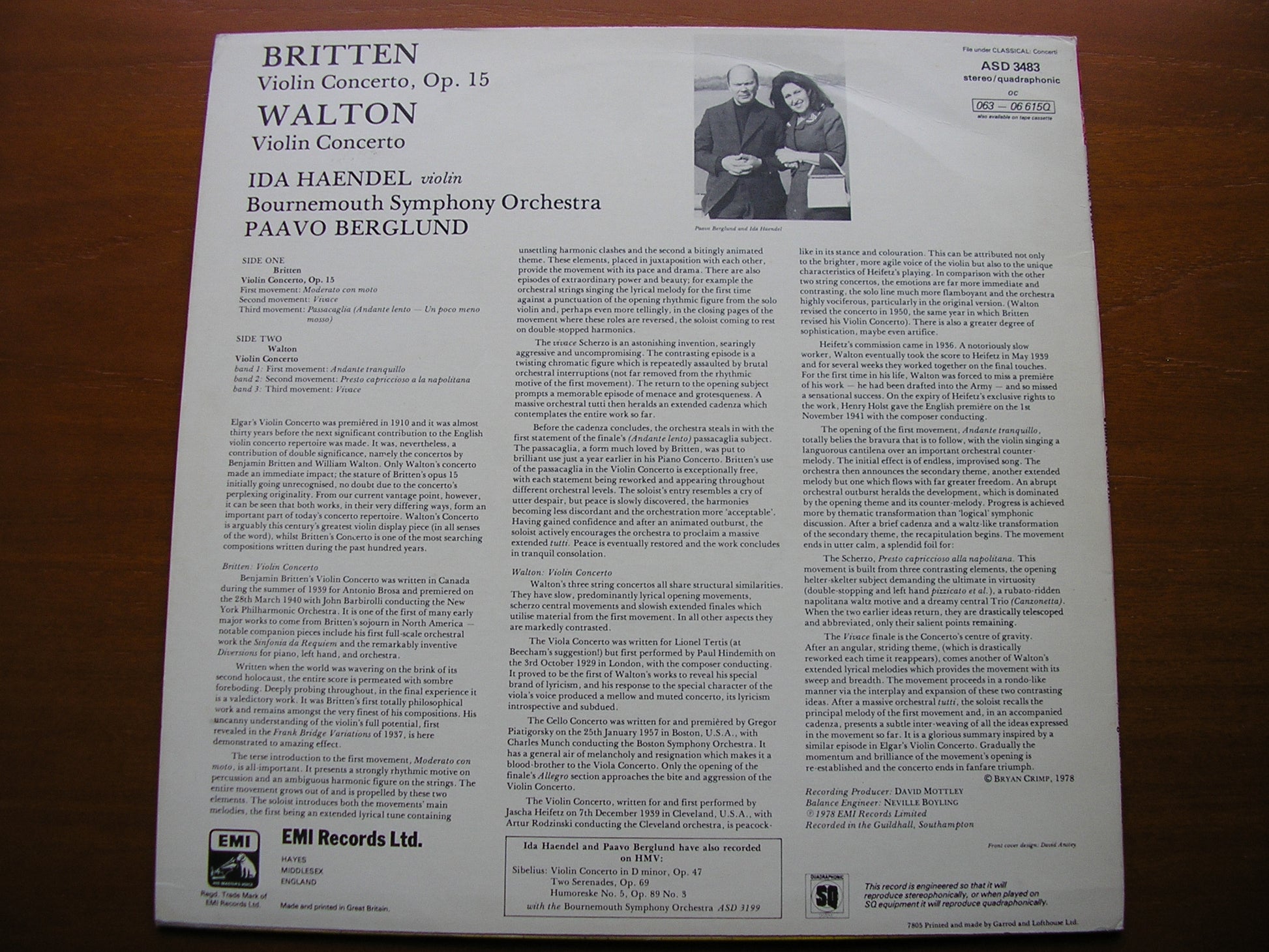 ASD 3483  BRITTEN & WALTON: VIOLIN CONCERTOS    IDA HAENDEL / BOURNEMOUTH SYMPHONY ORCHESTRA