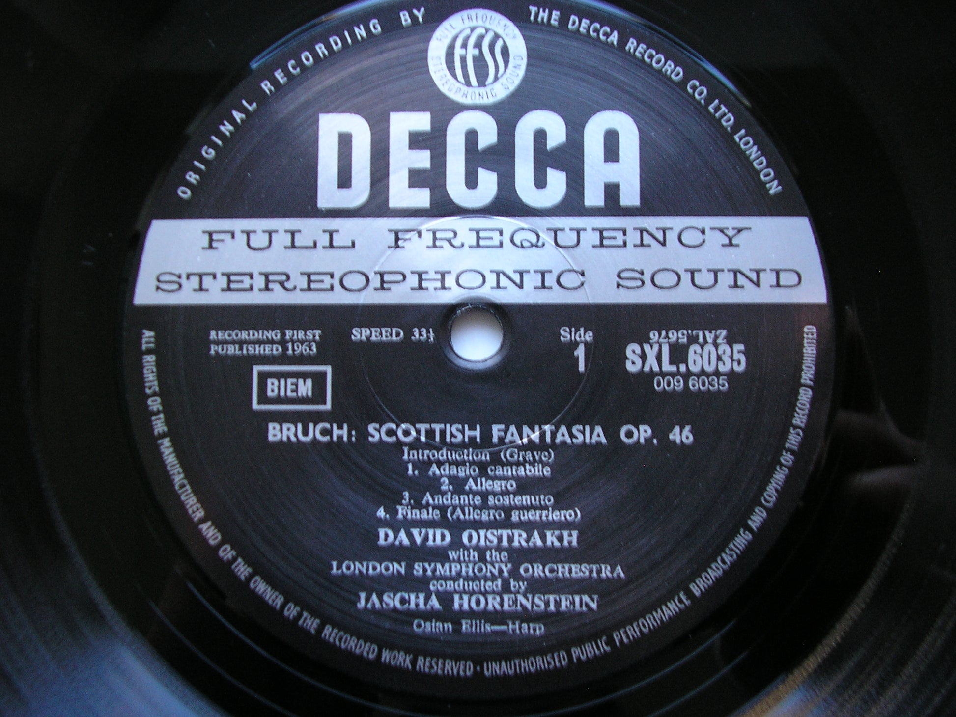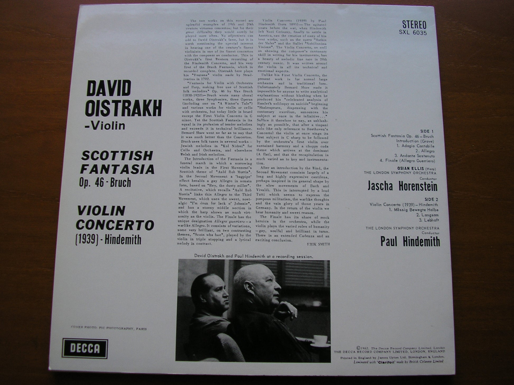 SXL 6035  BRUCH: SCOTTISH FANTASIA / HINDEMITH: VIOLIN CONCERTO       DAVID OISTRAKH / LONDON SYMPHONY ORCHESTRA / JASCHA HORENSTEIN / PAUL HINDEMITH