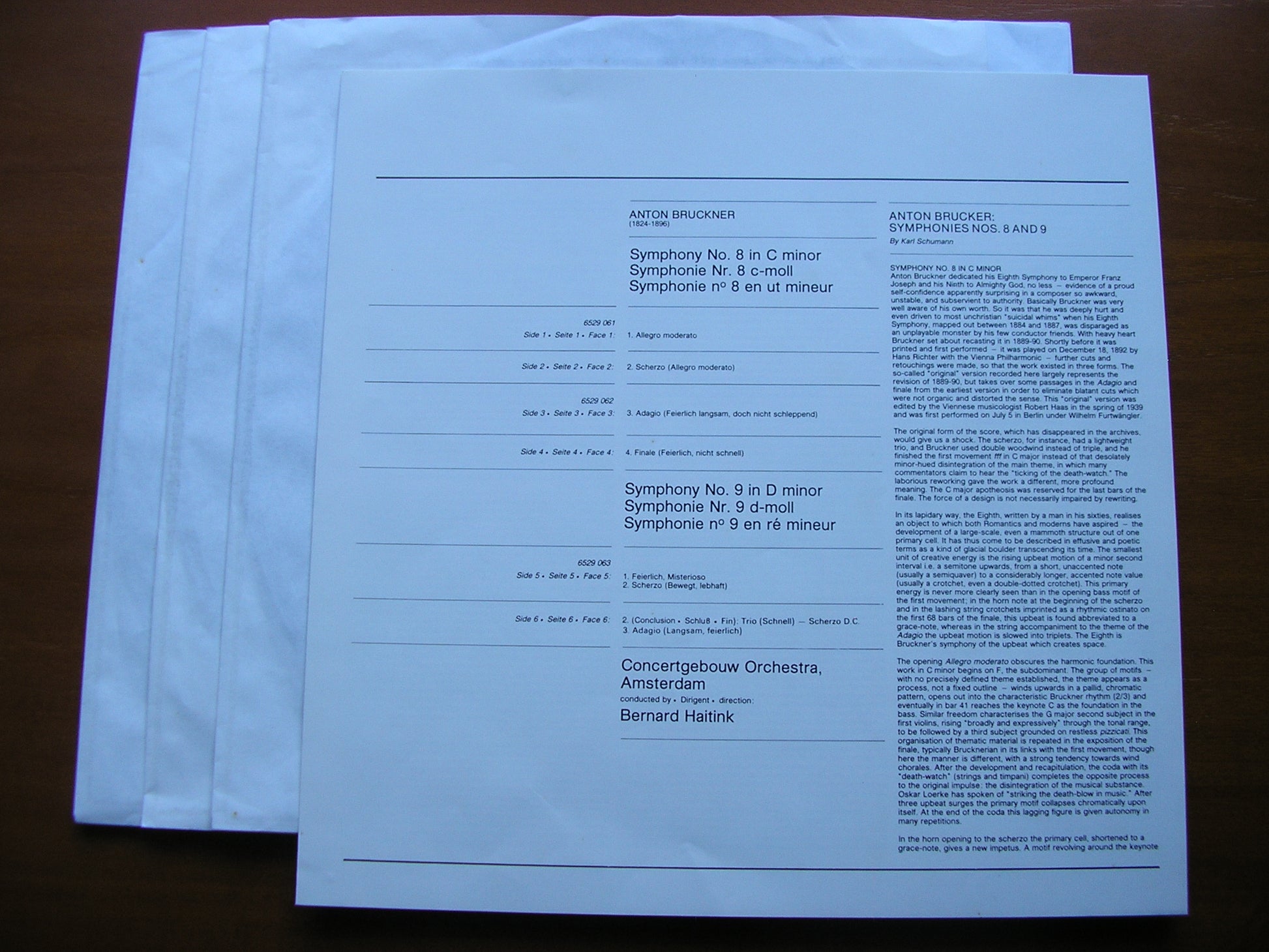 6725 014  BRUCKNER: SYMPHONIES Nos. 8 & 9      BERNARD HAITINK / CONCERTGEBOUW ORCHESTRA AMSTERDAM