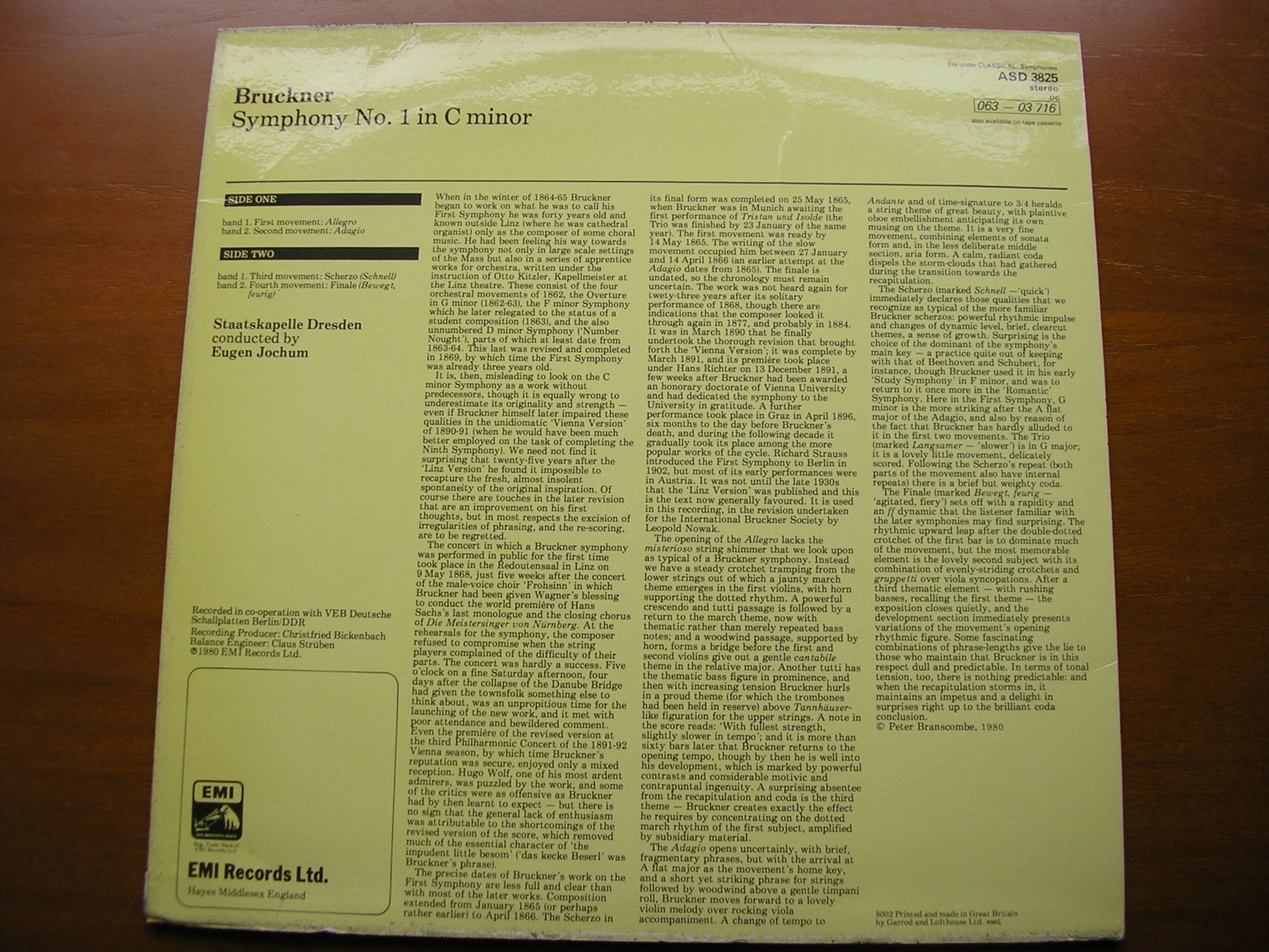 ASD 3825  BRUCKNER: SYMPHONY No. 1     EUGEN JOCHUM / DRESDEN STATE ORCHESTRA