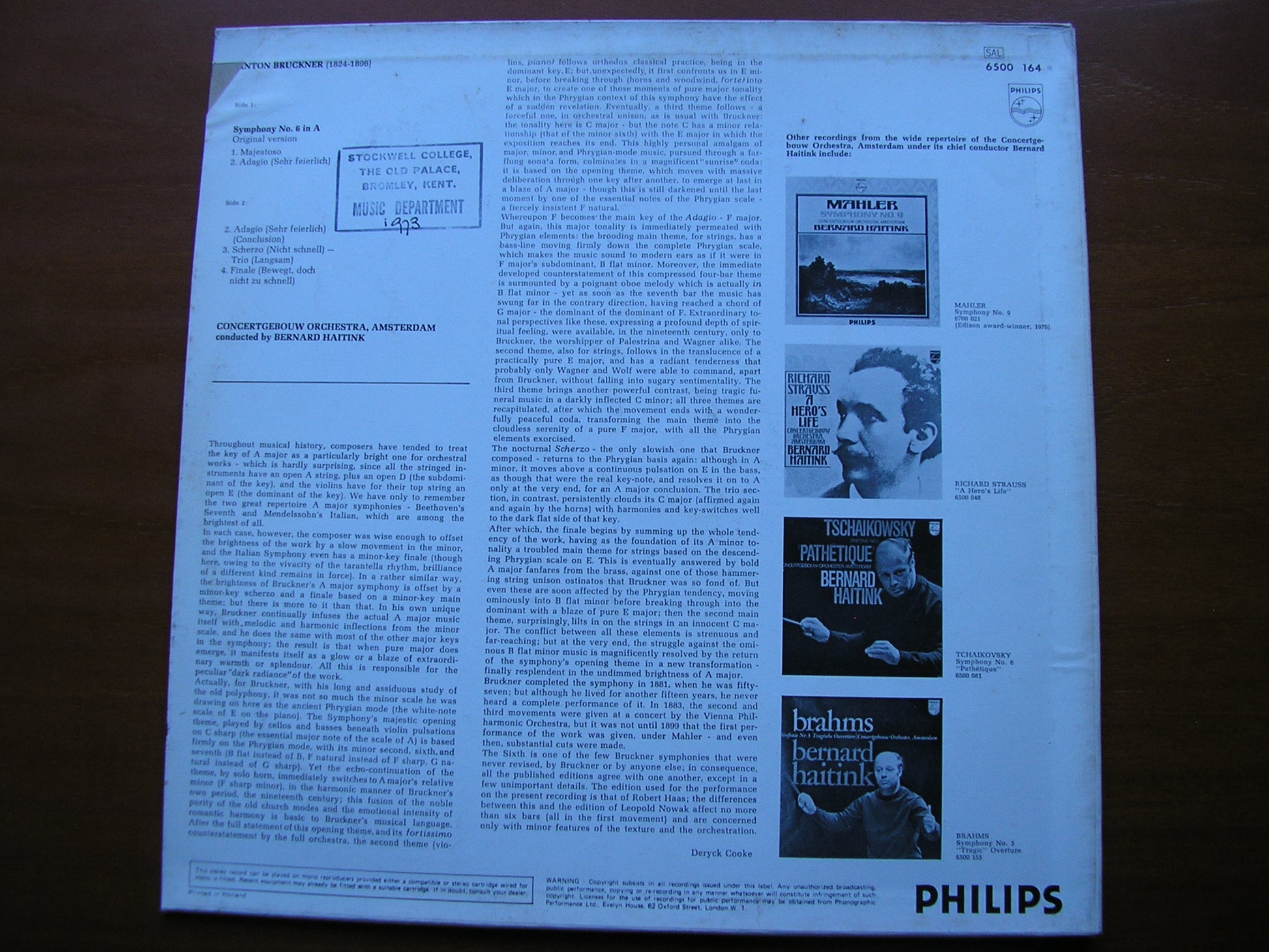 BRUCKNER: SYMPHONY No. 6 HAITINK / CONCERTGEBOUW ORCHESTRA 6500 164