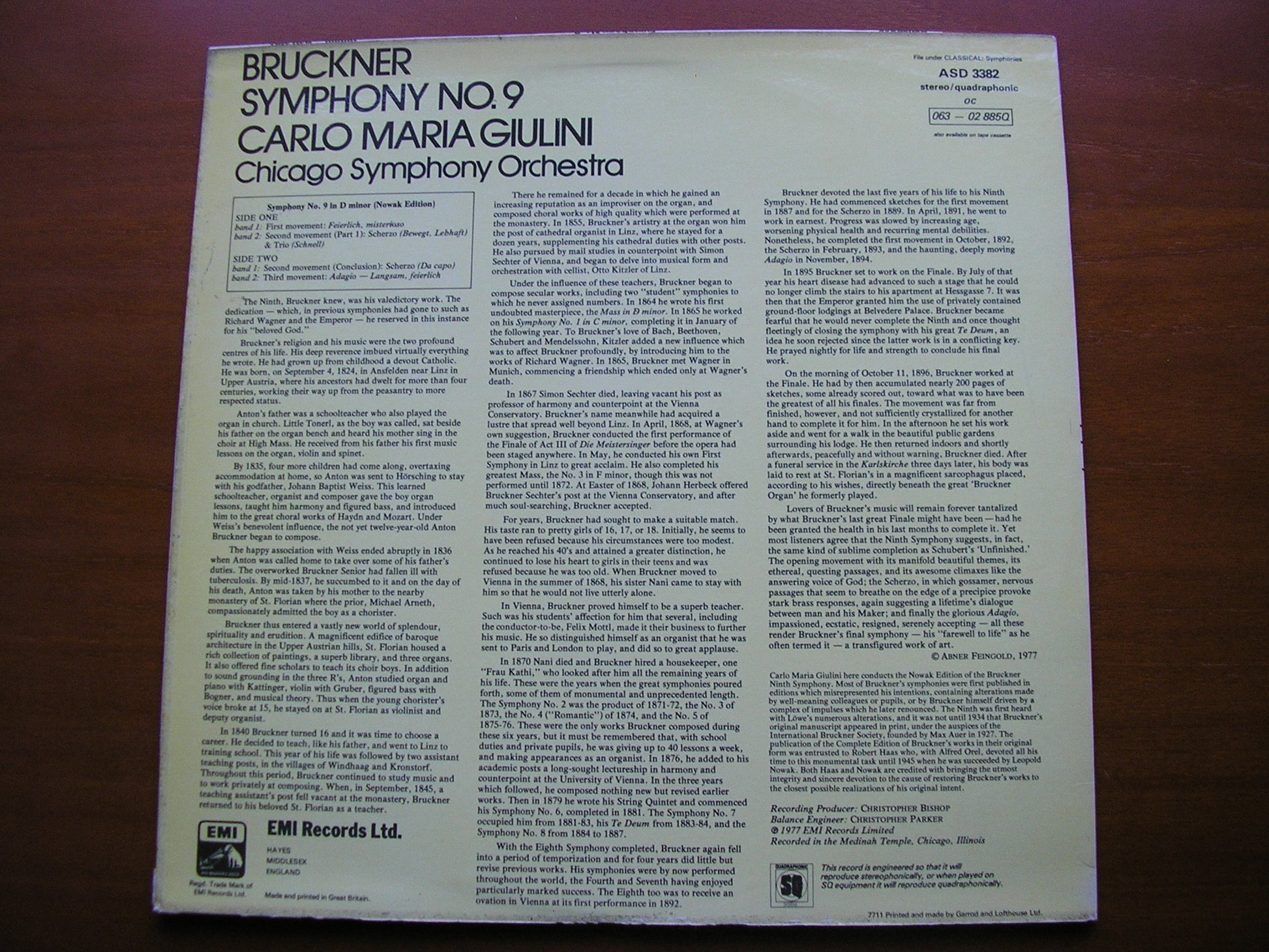 ASD 3382  BRUCKNER: SYMPHONY No. 9     CARLO MARIA GIULINI / CHICAGO SYMPHONY ORCHESTRA
