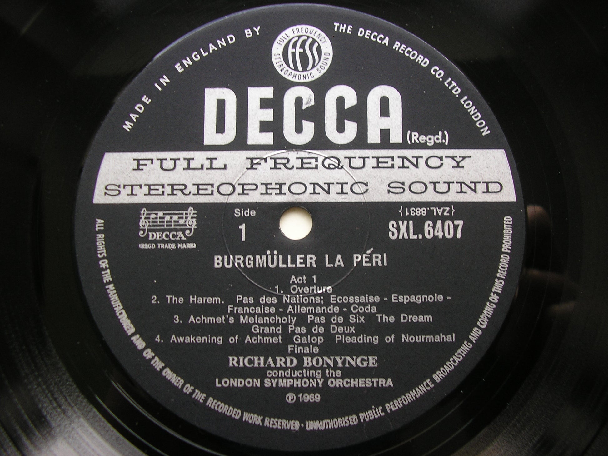 SXL 6407  BURGMULLER: LA PERI     RICHARD BONYNGE / LONDON SYMPHONY ORCHESTRA