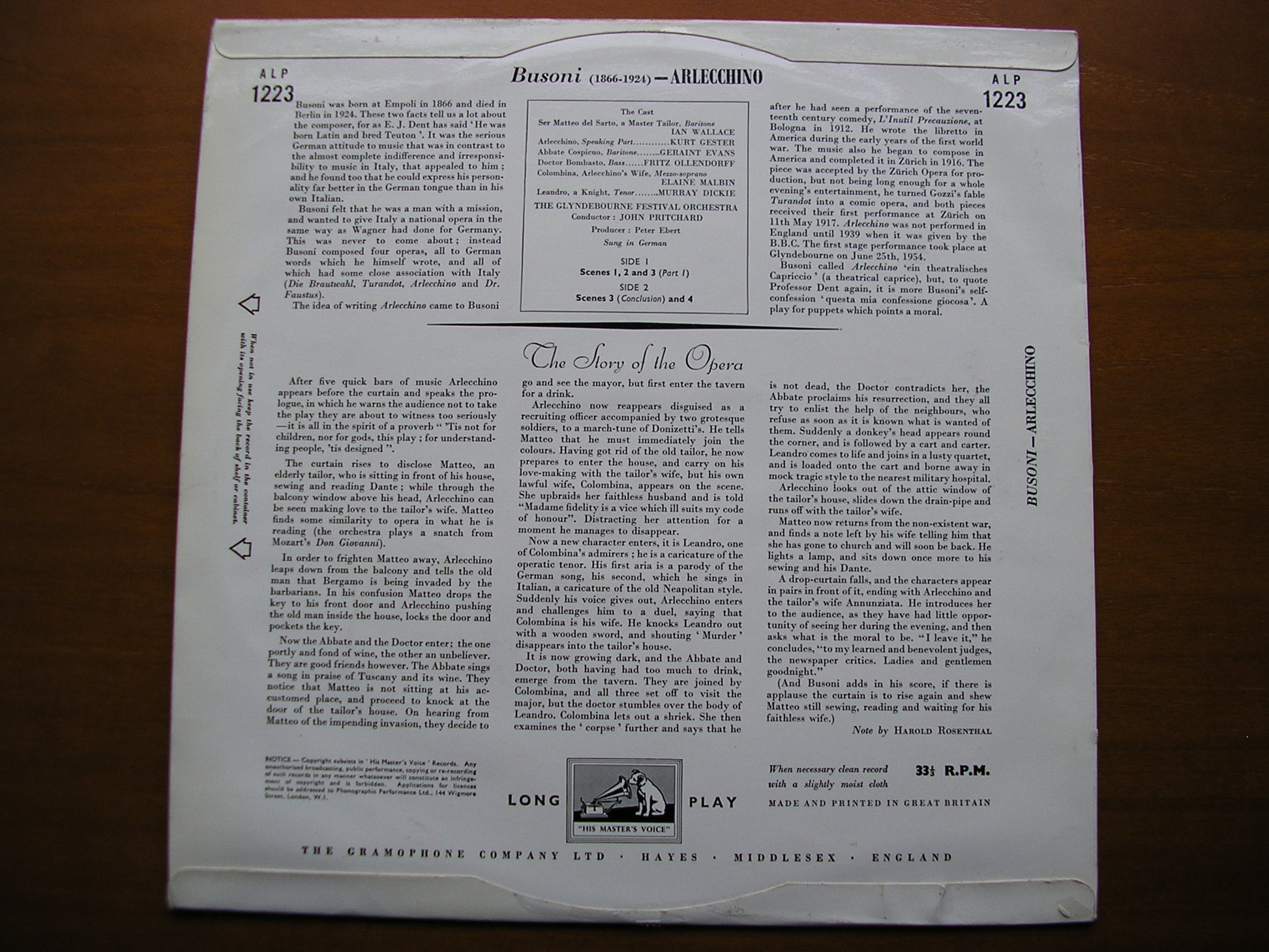 ALP 1223  BUSONI: ARLECCHINO     IAN WALLACE / GERAINT EVANS / ELAINE MALBN / JOHN PRITCHARD / GLYNDEBOURNE FESTIVAL ORCHESTRA
