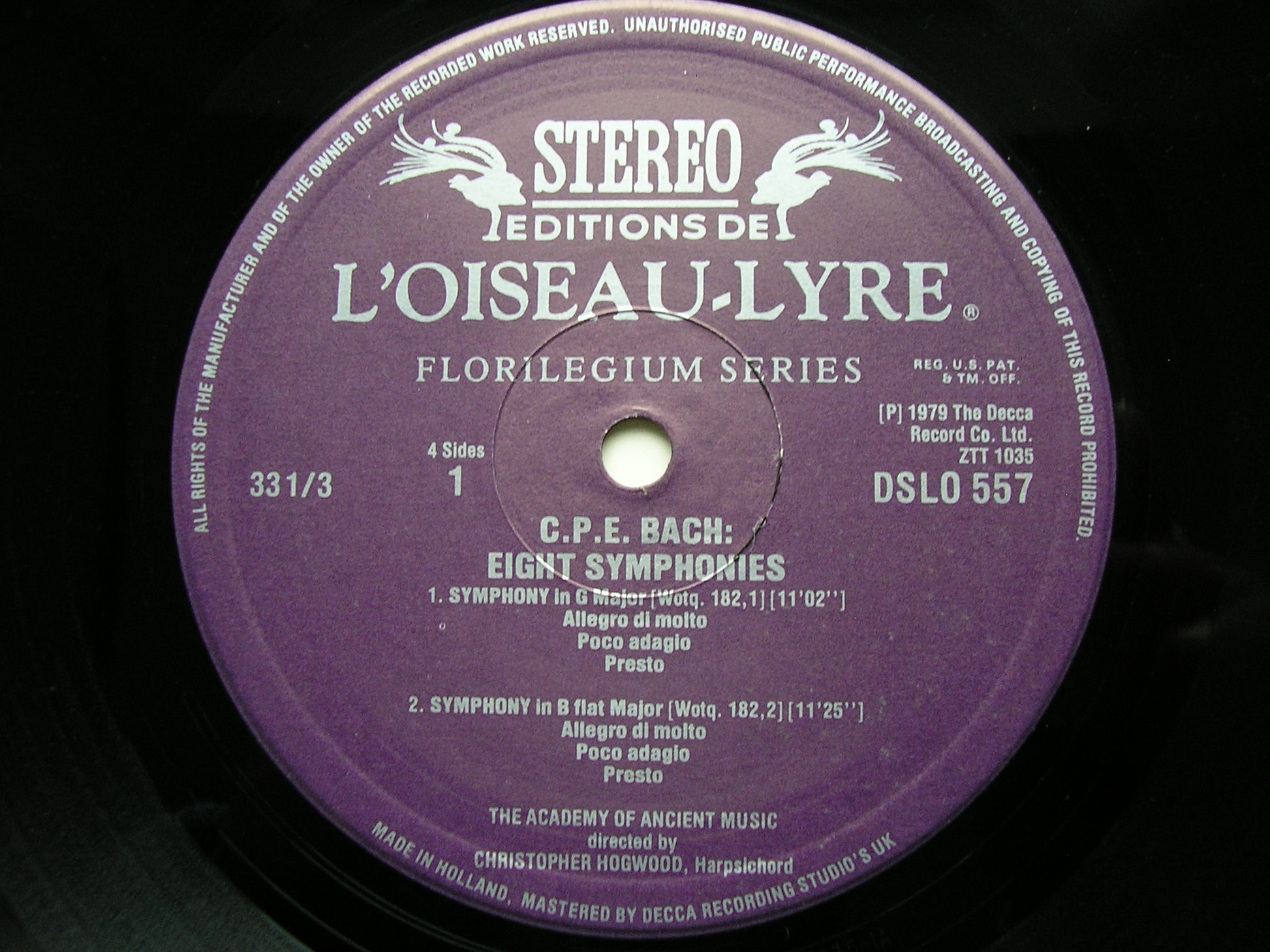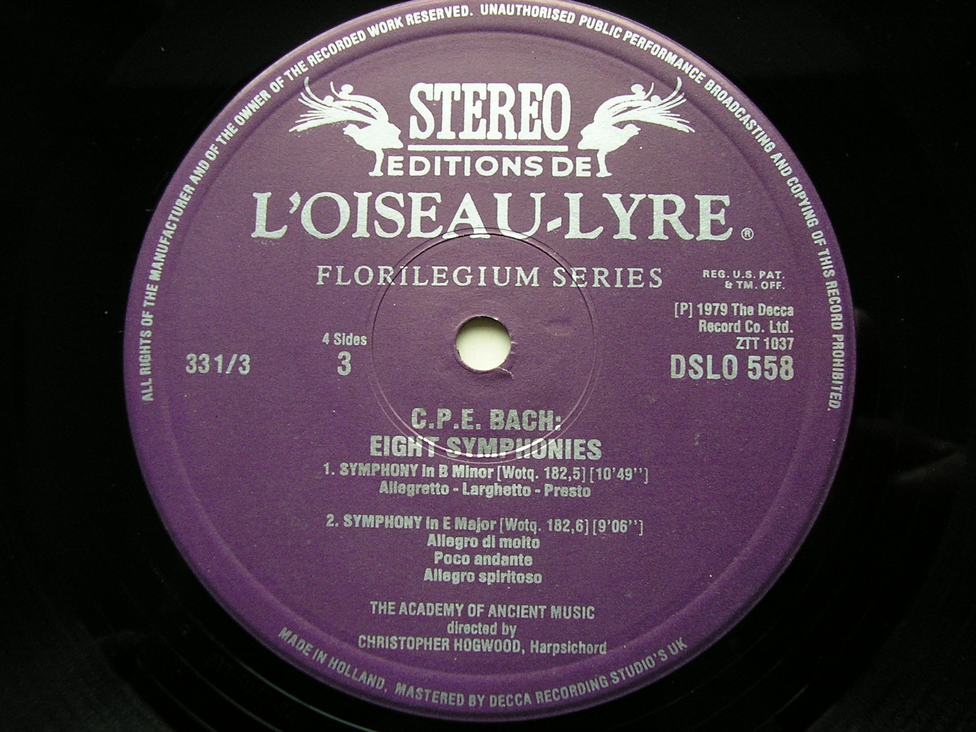 BACH C P E: EIGHT SYMPHONIES THE ACADEMY OF ANCIENT MUSIC / HOGWOOD DSLO 557 - 558