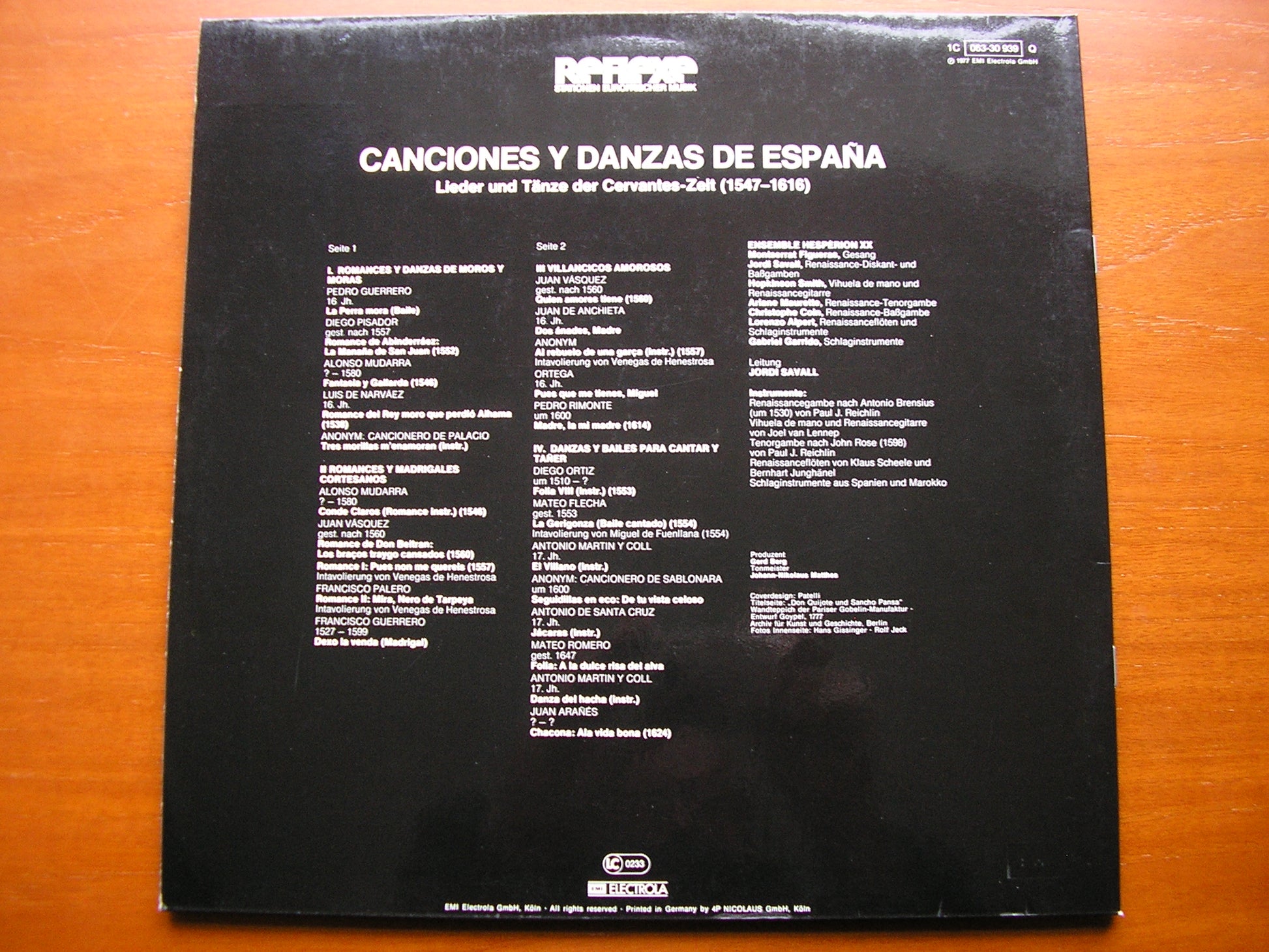 CANCIONES Y DANZAS DE ESPANA: SONGS & DANCES OF CERVANTES' TIME ENSEMBLE HESPERION XX 063 30 939