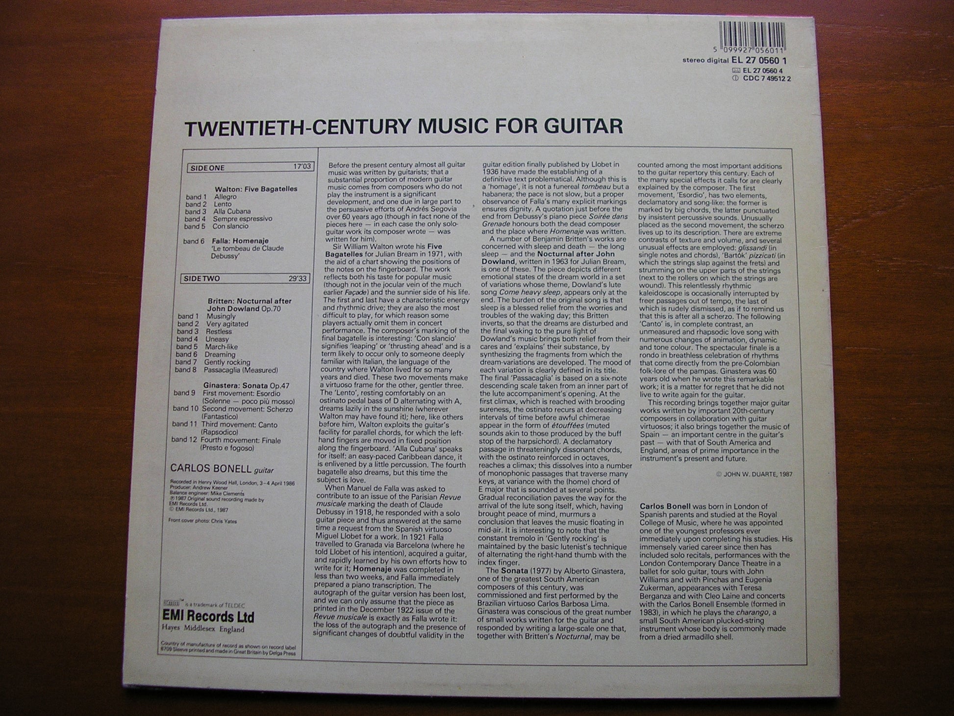 CARLOS BONELL PLAYS 20th CENTURY MUSIC FOR GUITAR: FALLA / WALTON / GINASTERA / BRITTEN 27 0560