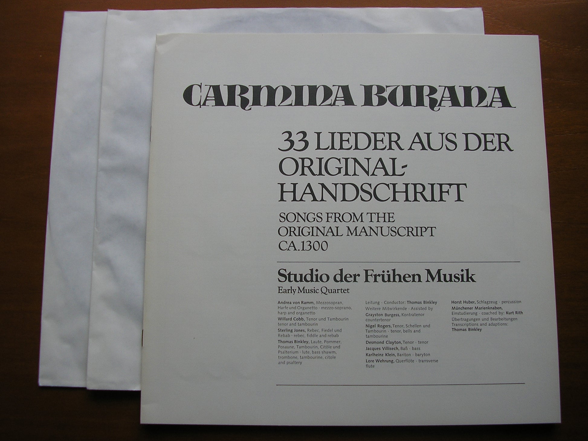 6.35319  CARMINA BURANA  SONGS FROM  THE MIDDLE AGES    STUDIO OF EARLY MUSIC / EARLY MUSIC QUARTET