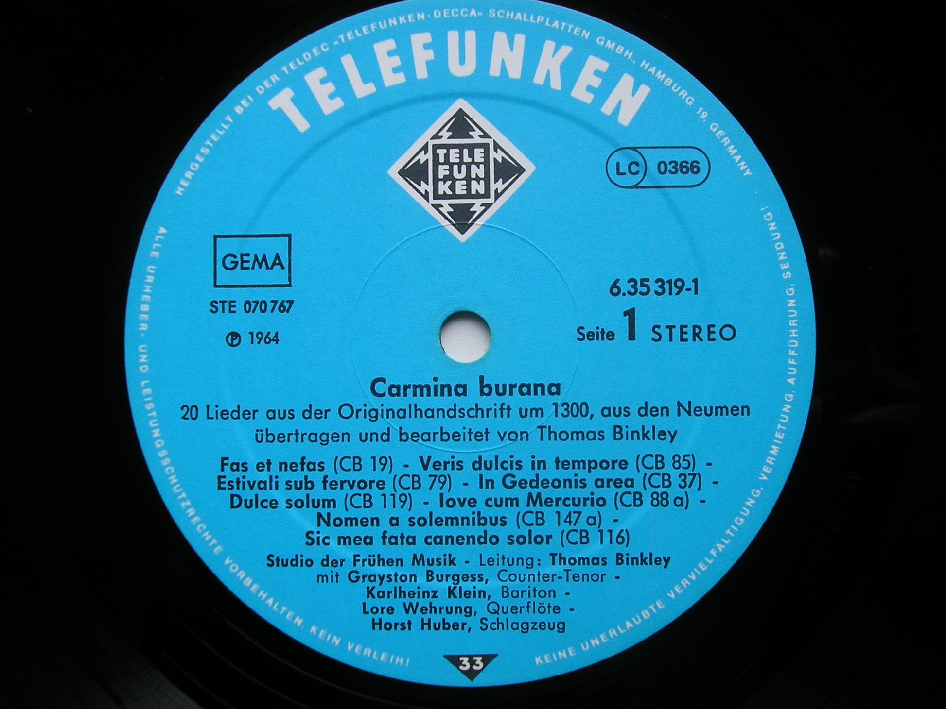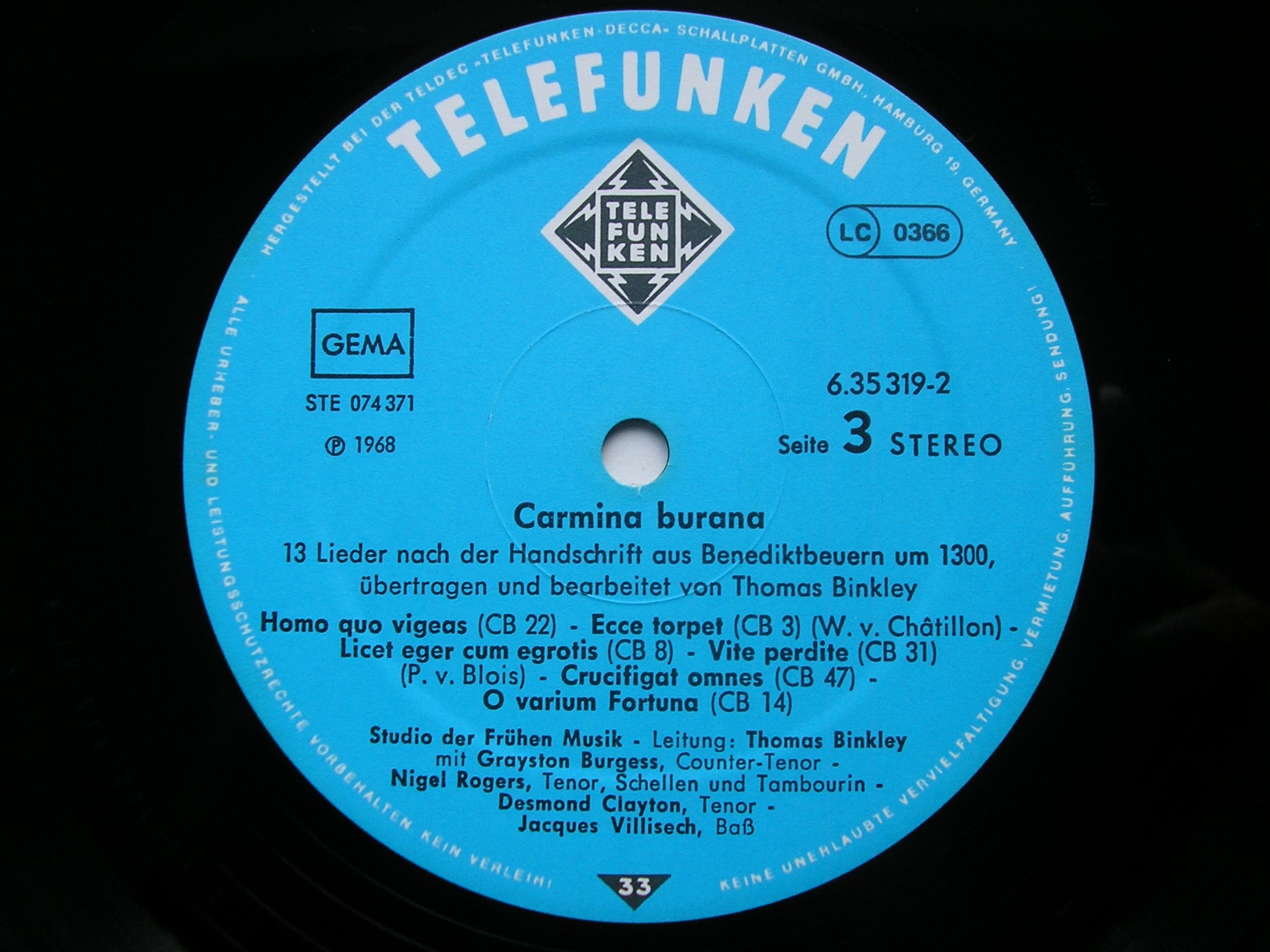 CARMINA BURANA: 33 SONGS FROM THE 13th CENTURY MANUSCRIPT / STUDIO OF EARLY MUSIC 6.35319