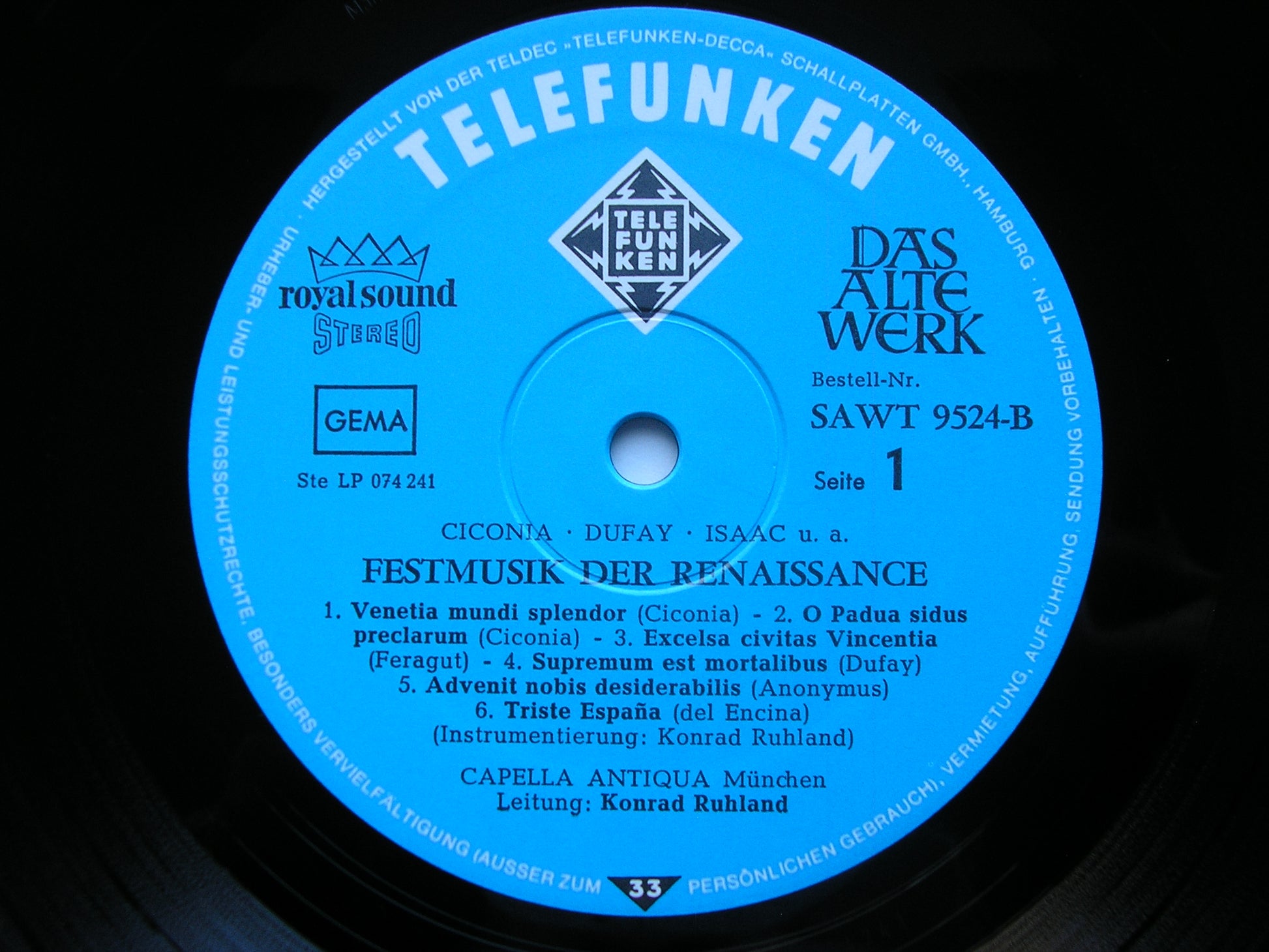 CEREMONIAL MUSIC OF THE RENAISSANCE: CICONIA / DUFAY / ISAAC / FERAGUT / ENCINA CAPELLA ANTIQUA MUNICH / RUHLAND SAWT 9524