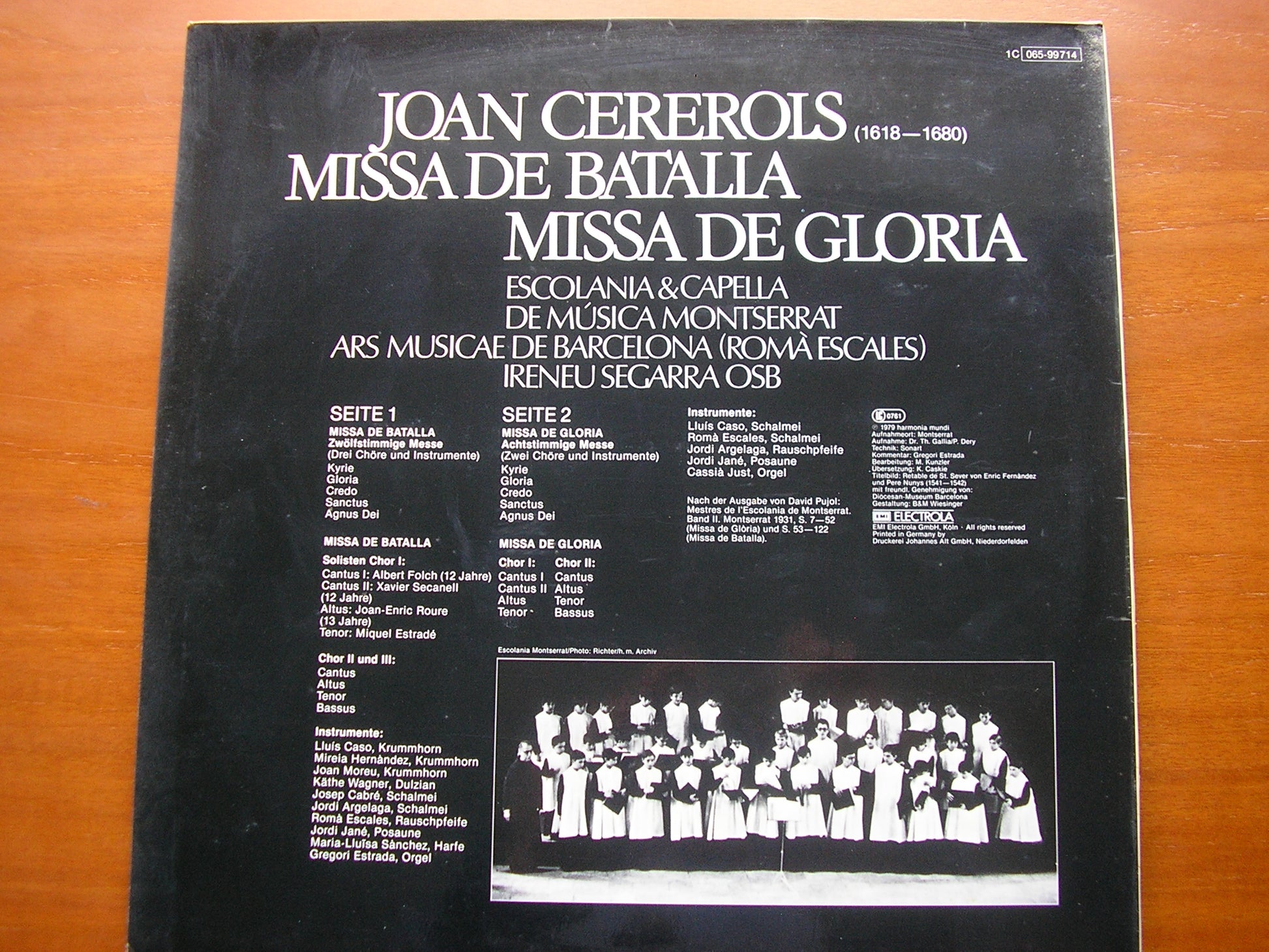 065 99714  CEREROLS: MISSA DE BATALIA / MISSA DE GLORIA   ESCOLANIA & CAPELLA DE MUSICA MONTSERRAT / ARS MUSICA DE BARCELONA / IRENEU SEGARRA