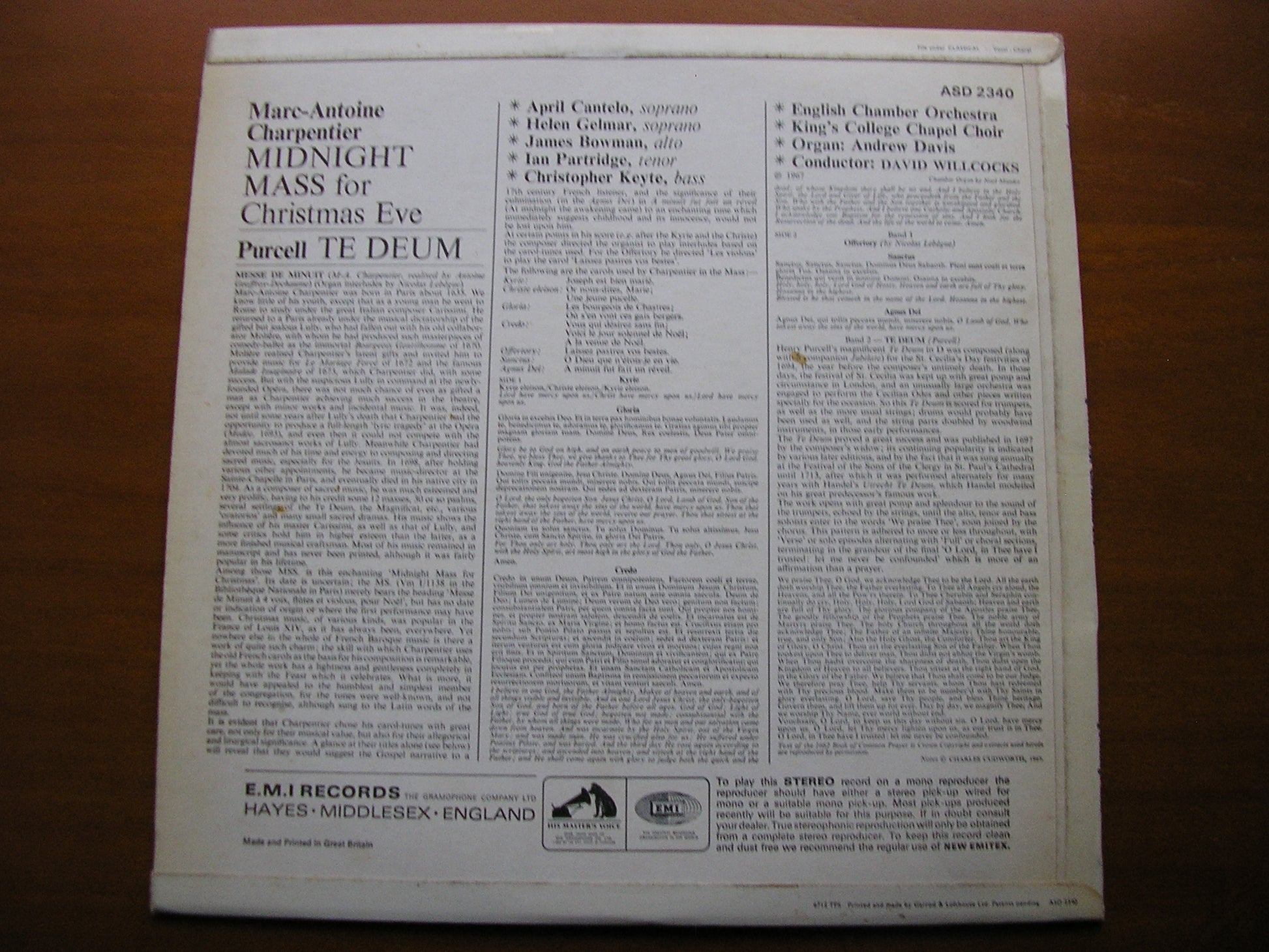 ASD 2340  CHARPENTIER: MIDNIGHT MASS / PURCELL: TE DEUM     SOLOISTS / KING'S COLLEGE CHOIR / ENGLISH CHAMBER ORCHESTRA / DAVID WILLCOCKS