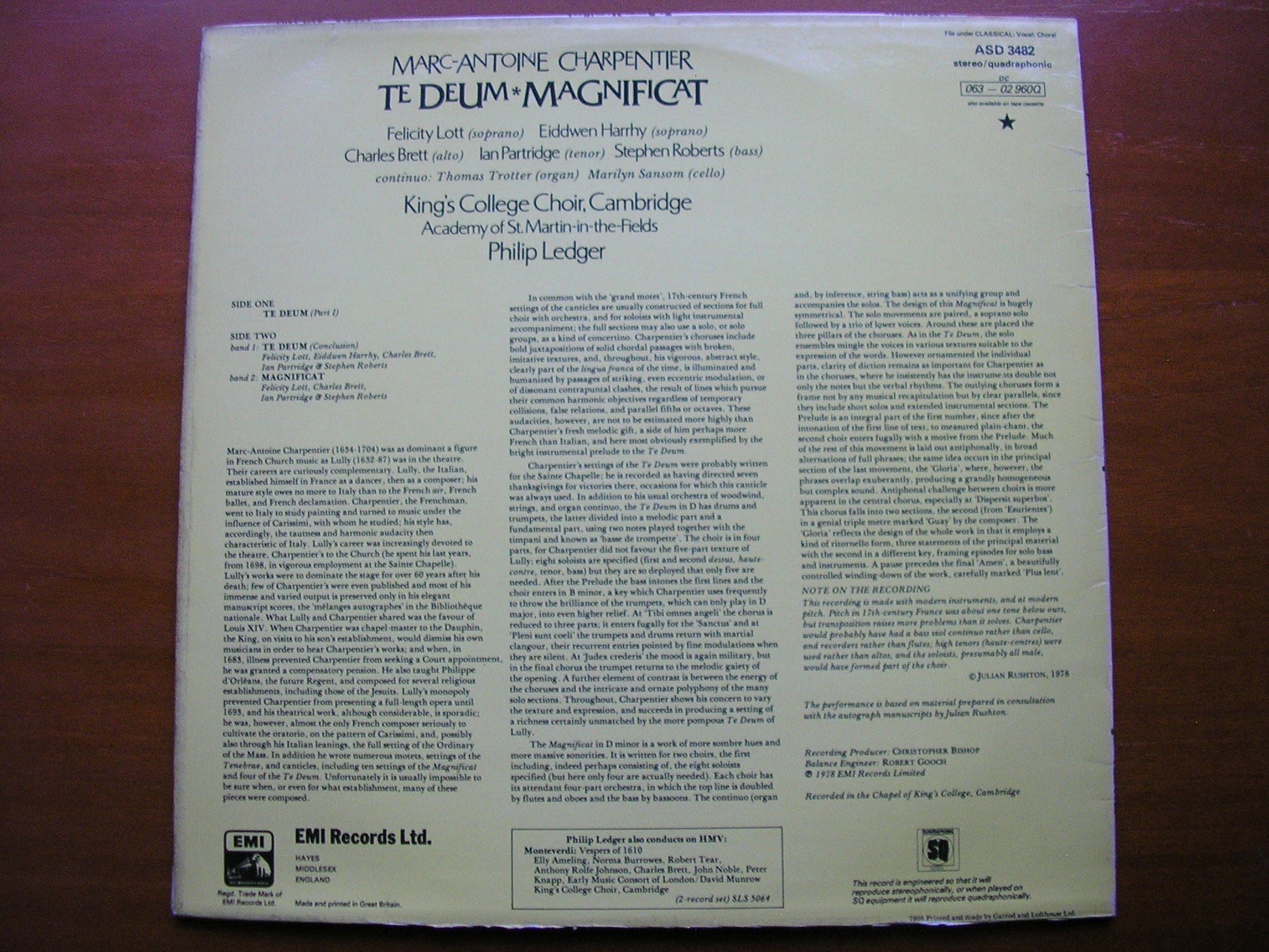 ASD 3482  CHARPENTIER: TE DEUM / MAGNIFICAT    SOLOISTS / KING'S COLLEGE CHOIR CAMBRIDGE / ACADEMY OF SAINT MARTIN IN THE FIELDS / PHILIP LEDGER