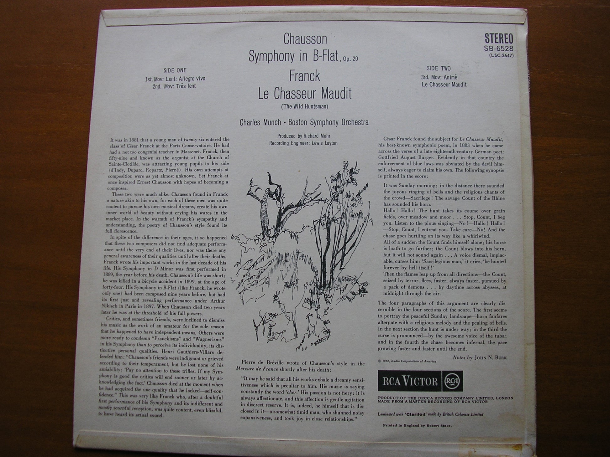 CHAUSSON: SYMPHONY in B / FRANCK: LE CHASSEUR MAUDIT CHARLES MUNCH / BOSTON SYMPHONY SB 6528