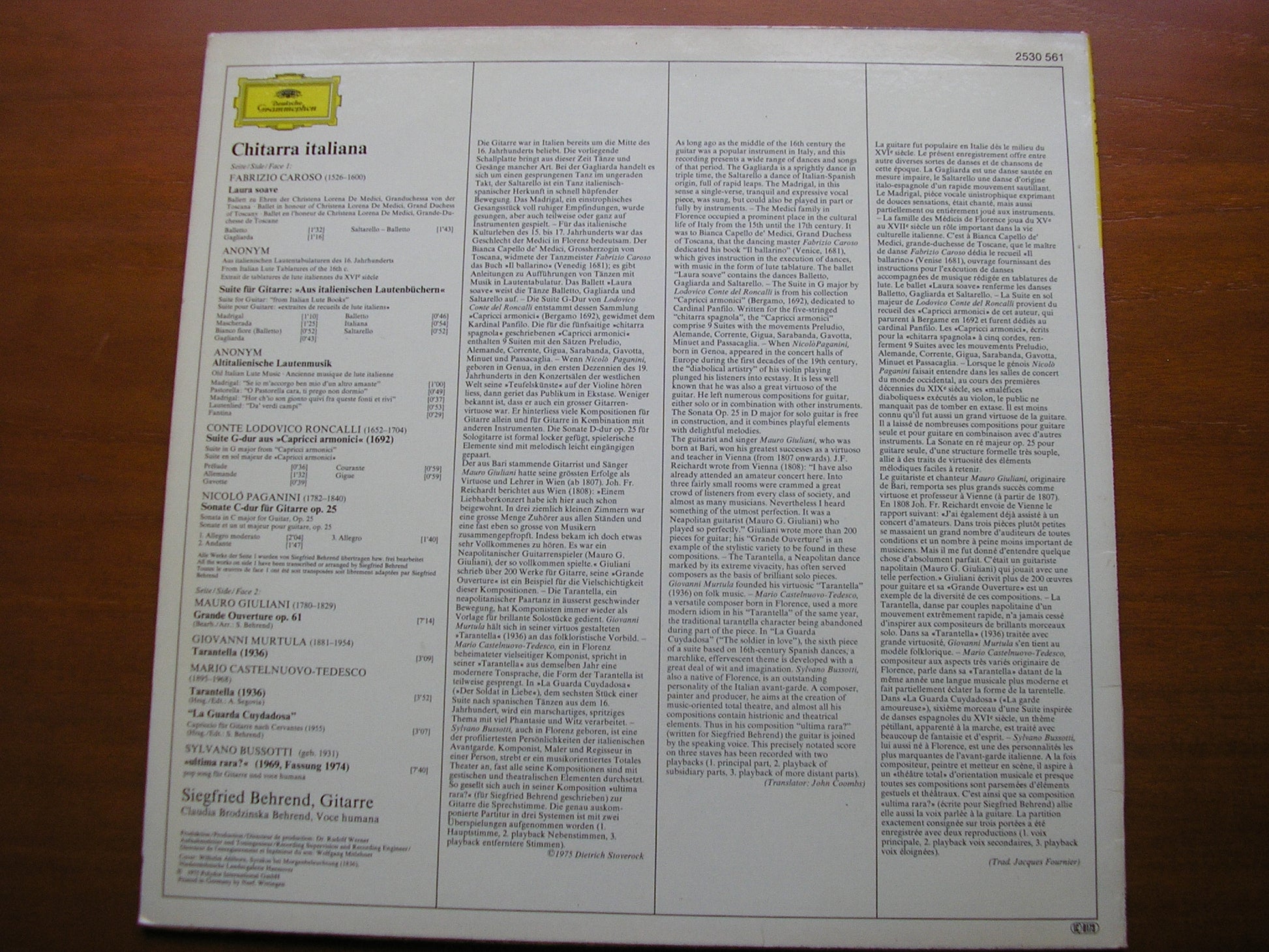 2530 561  CAROSO / RONCALLI / CASTEL NUOVO-TEDESCO / MURTULA / PAGANNI / GIULIANI         SIEGFRIED BEHREND        NM / EX+