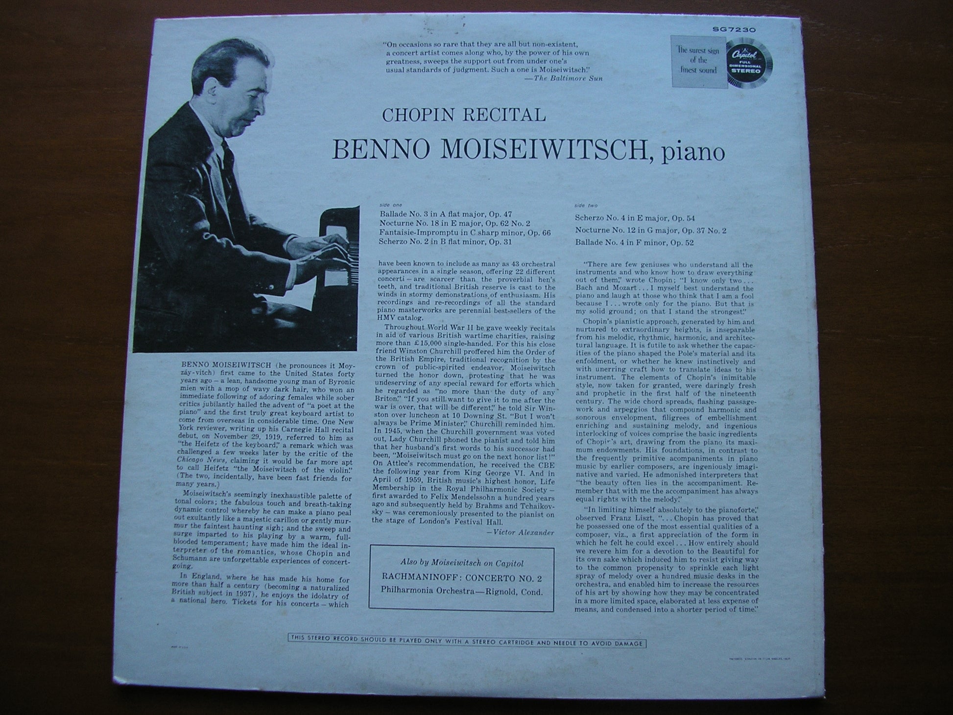 SG 7230  CHOPIN: PIANO WORKS      BENNO MOISEIWITSCH