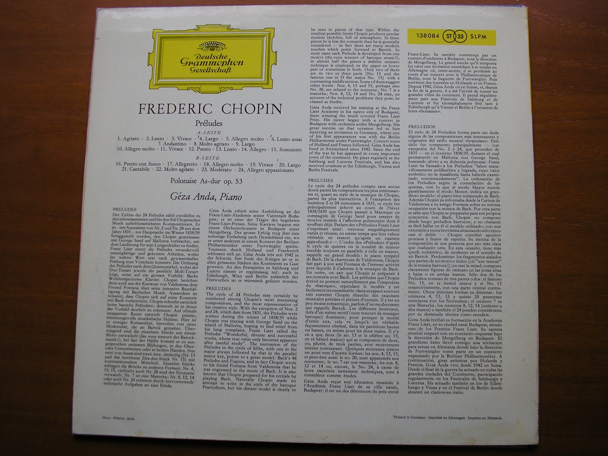 138 084  CHOPIN: 24 PRELUDES Op. 28 / POLONAISE No. 6 Op. 53      GEZA ANDA