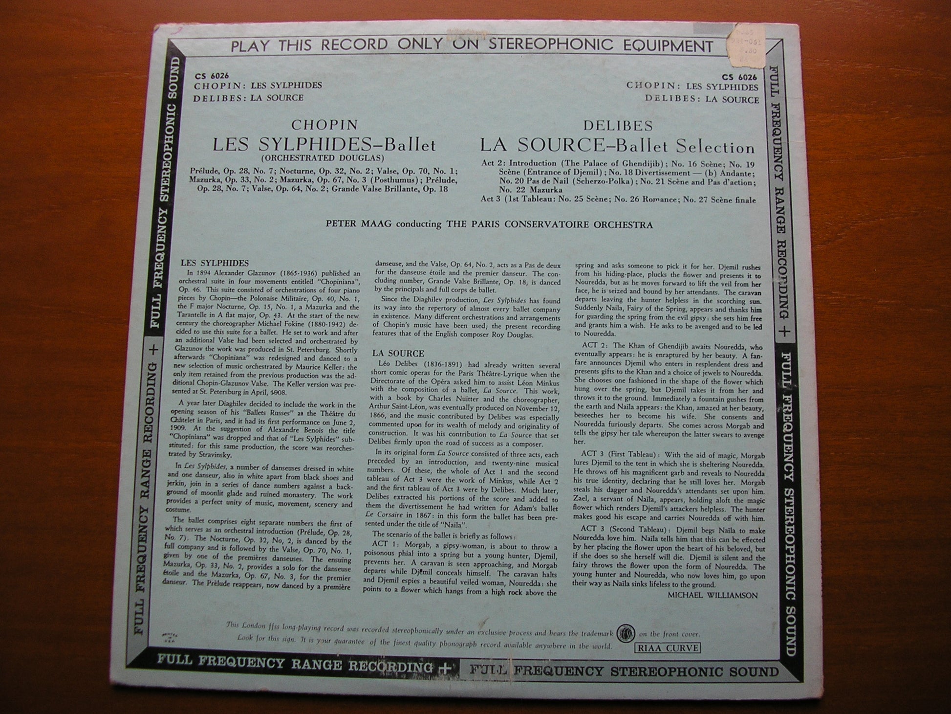 CS 6026  CHOPIN: LES SYLPHIDES / DELIBES: LA SOURCE     PETER MAAG / PARIS CONSERVATOIRE ORCHESTRA
