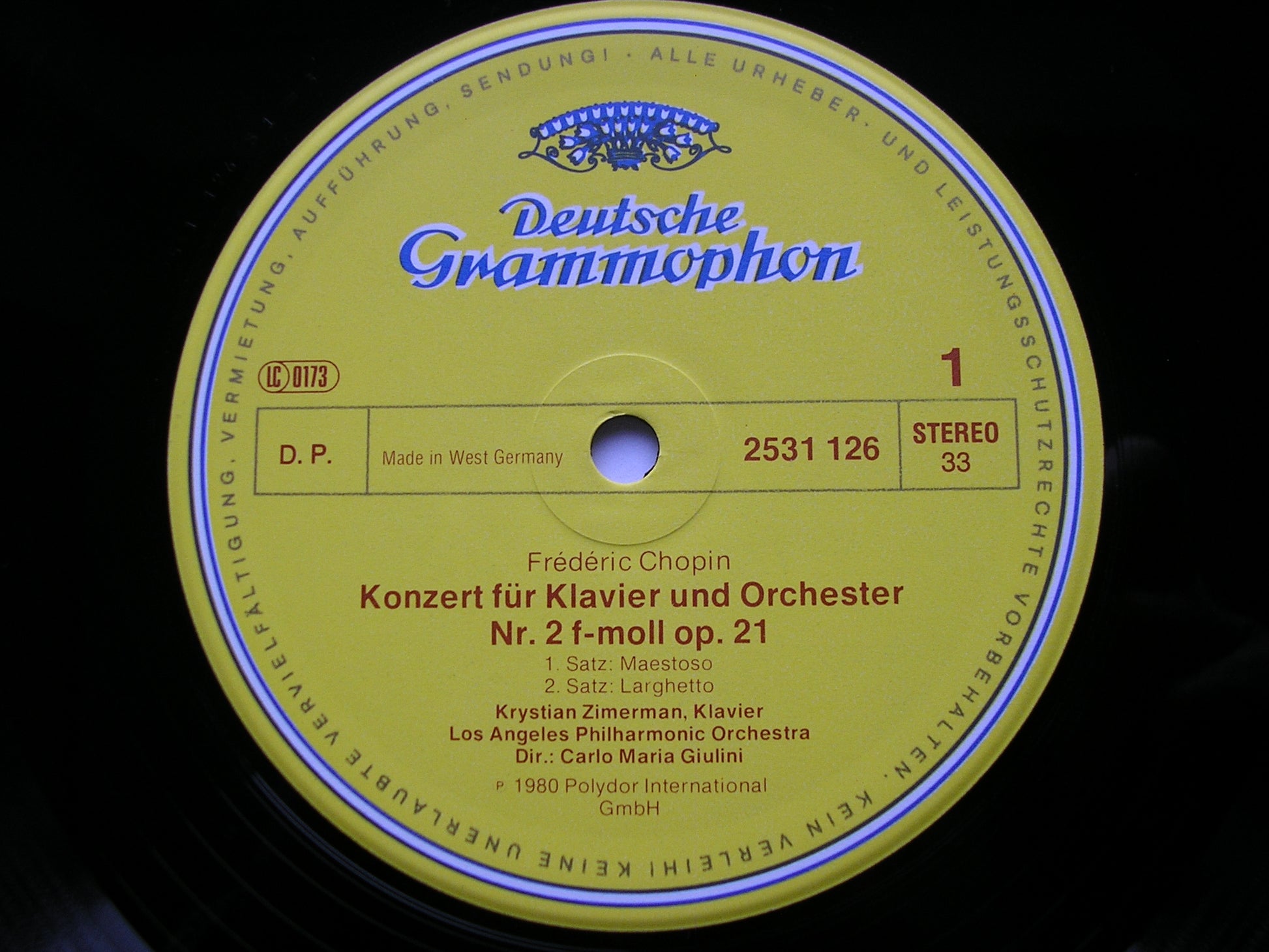 2531 126  CHOPIN: PIANO CONCERTO No. 2 / GRANDE POLONAISE BRILLANTE & ANDANTE SPIANATO Op. 22      KYSTIAN ZIMERMAN / LOS ANGELES PHILHARMONIC ORCHESTRA / CARLO MARIA GIULINI