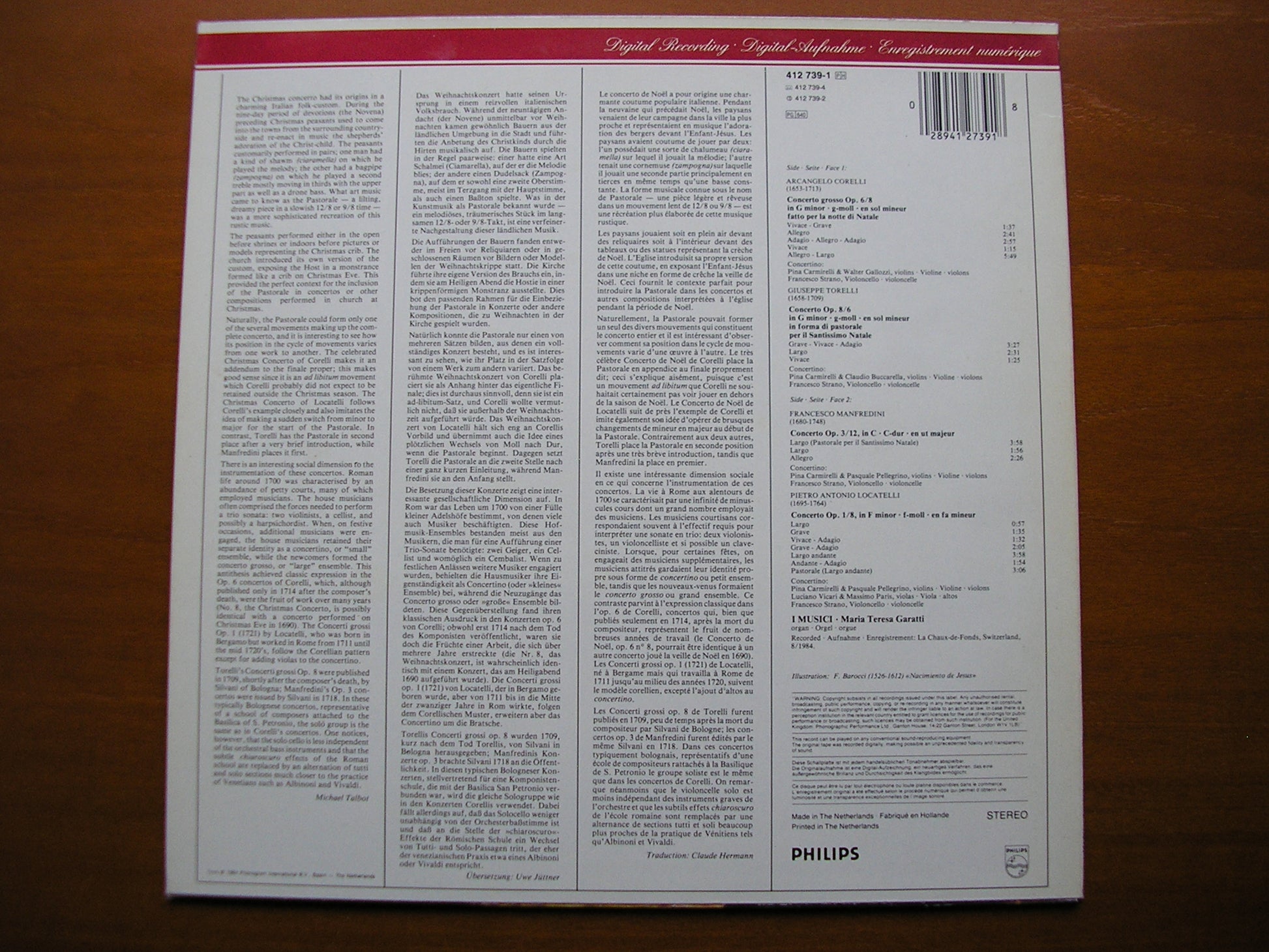 412 739  CHRISTMAS CONCERTOS: CORELLI / TORELLI / MANFREDINI / LOCATELLI   I MUSICI