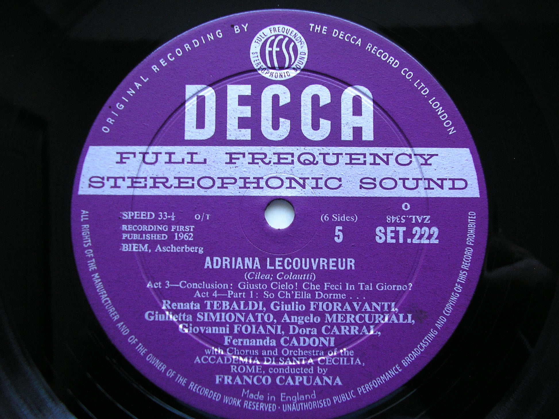 SET 221 - 223  CILEA: ADRIANA LECOUVREUR   RENATA TEBALDI / MARIO DEL MONACO / GIULIETTA SIMIONATO / GIULIO FIORAVANTI / ACCADEMIA DI SANTA CECILIA ROME / FRANCO CAPUANA