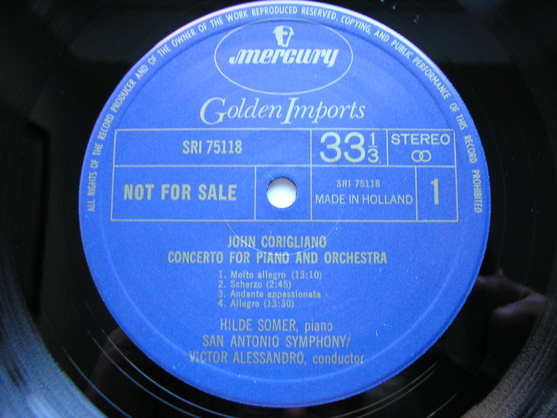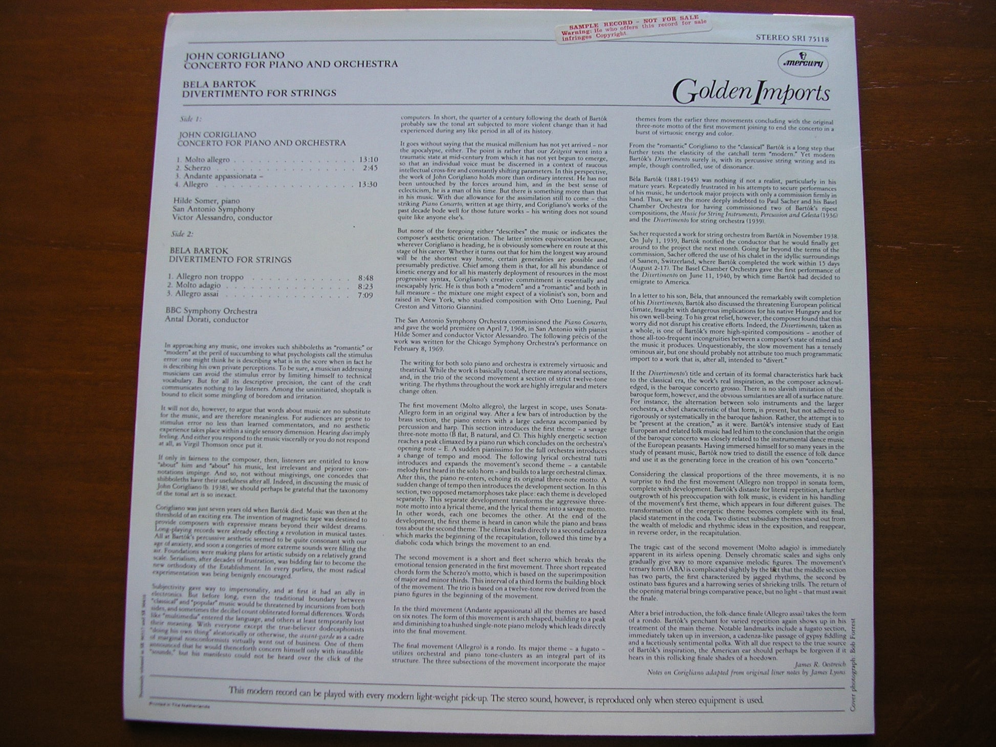 SRI 75118  CORIGLIANO: PIANO CONCERTO   HILDE SOMER / SAN ANTONIO SYMPHONY / VICTOR ALESSANDRO     BARTOK: DIVERTIMENTO   ANTAL DORATI / BBC SYMPHONY ORCHESTRA