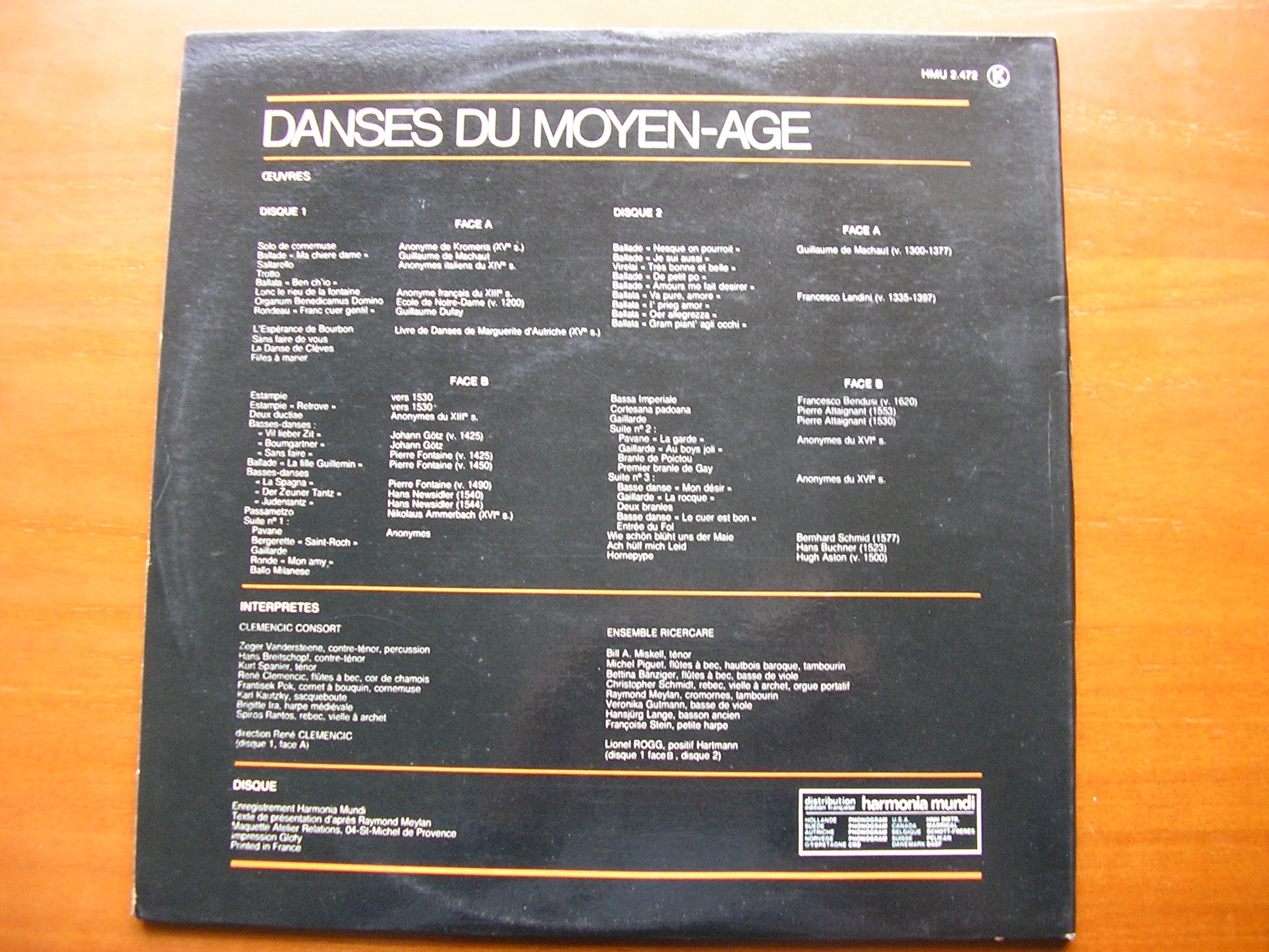 HMU 2472  DANCES OF THE MIDDLE AGES      CLEMENCIC CONSORT / ENSEMBLE RICERCARE