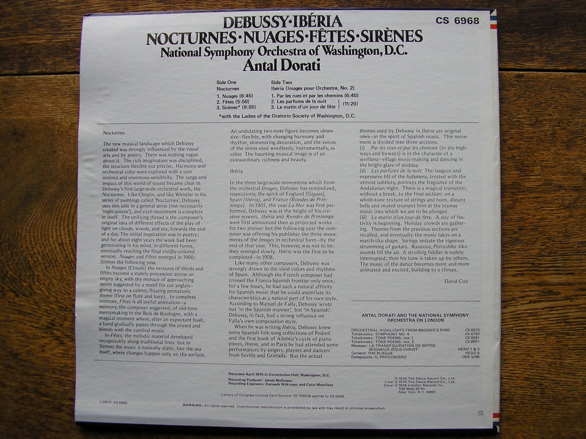 CS 6968  DEBUSSY: NOCTURNES / IBERIA   ANTAL DORATI / NATIONAL SYMPHONY ORCHESTRA OF WASHINGTON, DC