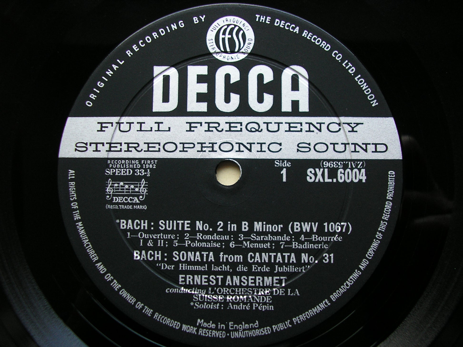 SXL 6004  BACH: SUITES Nos. 2 & 3 / SINFONIA / SONATA      ERNEST ANSERMET / SUISSE ROMANDE ORCHESTRA