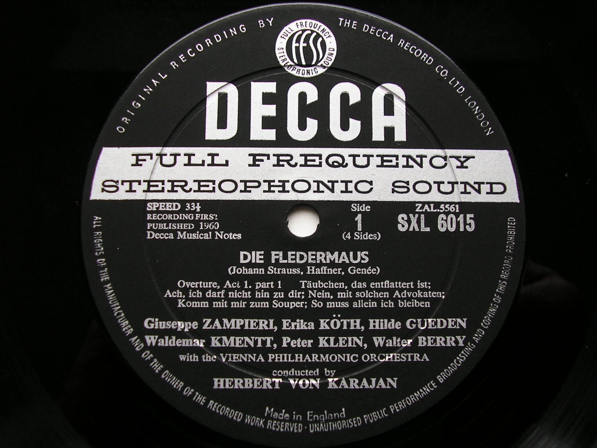 SXL 6015 / 6016  STRAUSS: DIE FLEDERMAUS       HIDE GUEDEN / WALTER BERRY / REGINA RESNIK / EBERHARD WAECHTER / VIENNA PHILHARMONIC ORCHESTRA / HERBERT VON KARAJAN