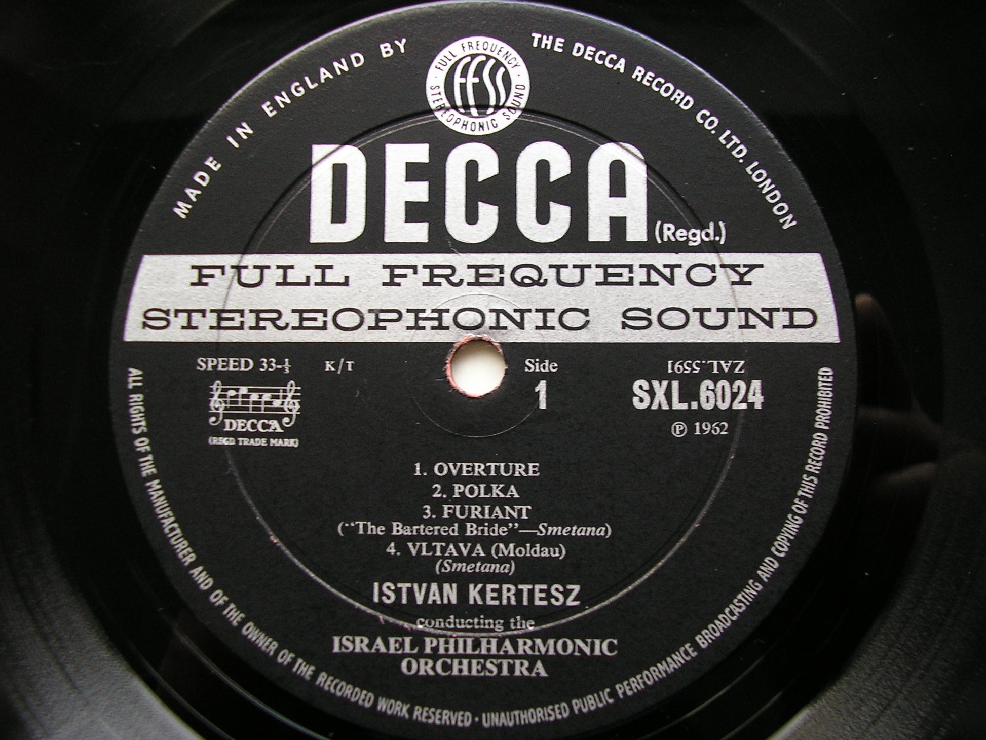 SXL 6024  DVORAK: FIVE SLAVONIC DANCES / SMETANA: OVERTURE / POLKA / FURIANT from 'The Bartered Bride' / VLTAVA        ISTVAN KERTESZ / ISRAEL PHILHARMONIC ORCHESTRA
