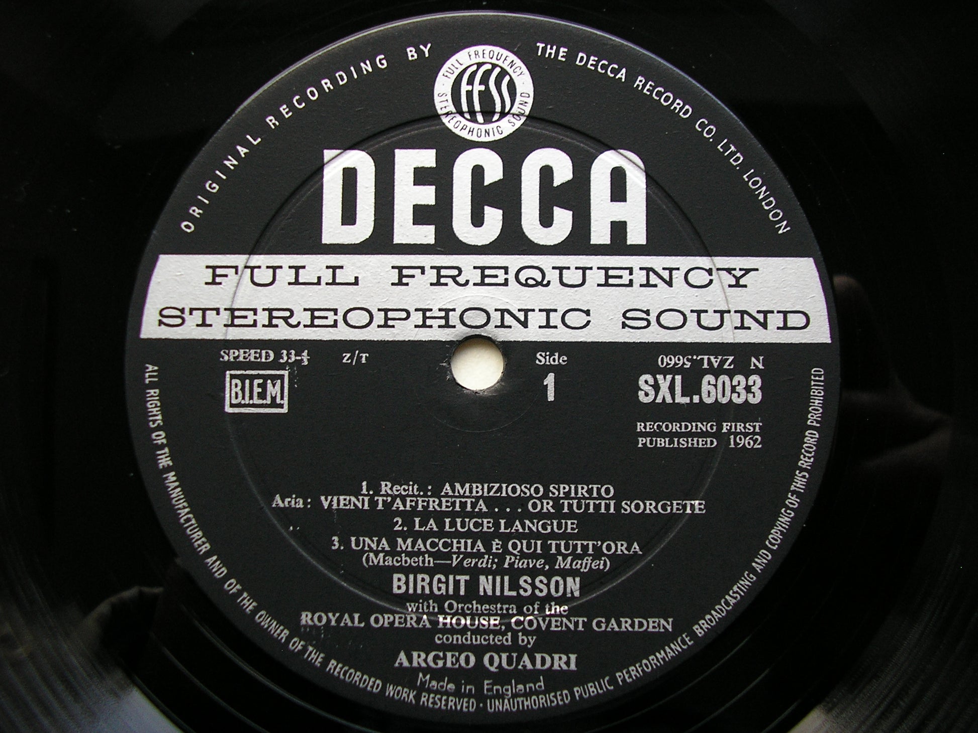 SXL 6033  BIRGIT NILSSON SINGS VERDI: MACBETH / DON CARLOS / LA FORZA DEL DESTINO / NABUCCO      ARGEO QUADRI / ORCHESTRA OF THE ROYAL OPERA HOUSE COVENT GARDEN