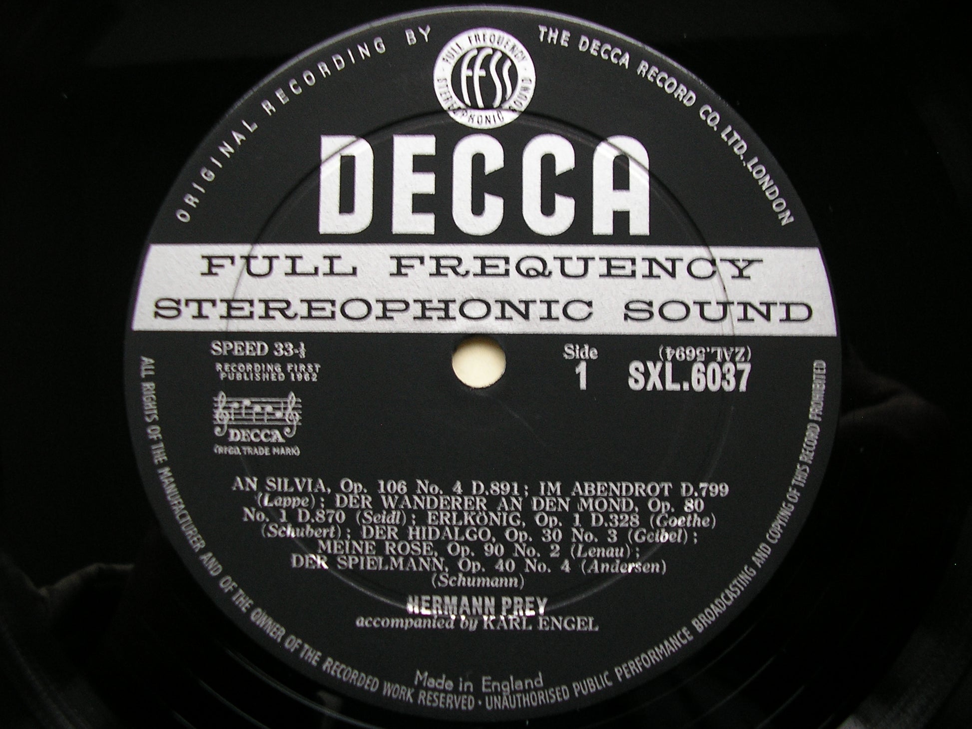 SXL 6037 HERMANN PREY SINGS SCHUBERT / SCHUMANN / BRAHMS / STRAUSS KARL ENGEL ED1