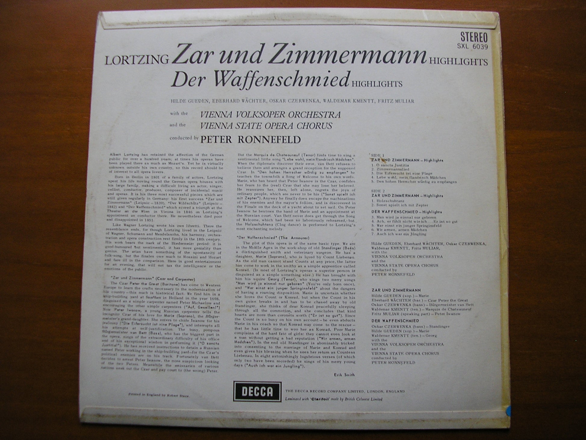 SXL 6039 LORTZING: ZAR & ZIMMERMANN / DER WAFFENSCHIED excerpts GUEDEN / WAECHTER / VIENNA VOLKSOPER / RONNEFELD ED1