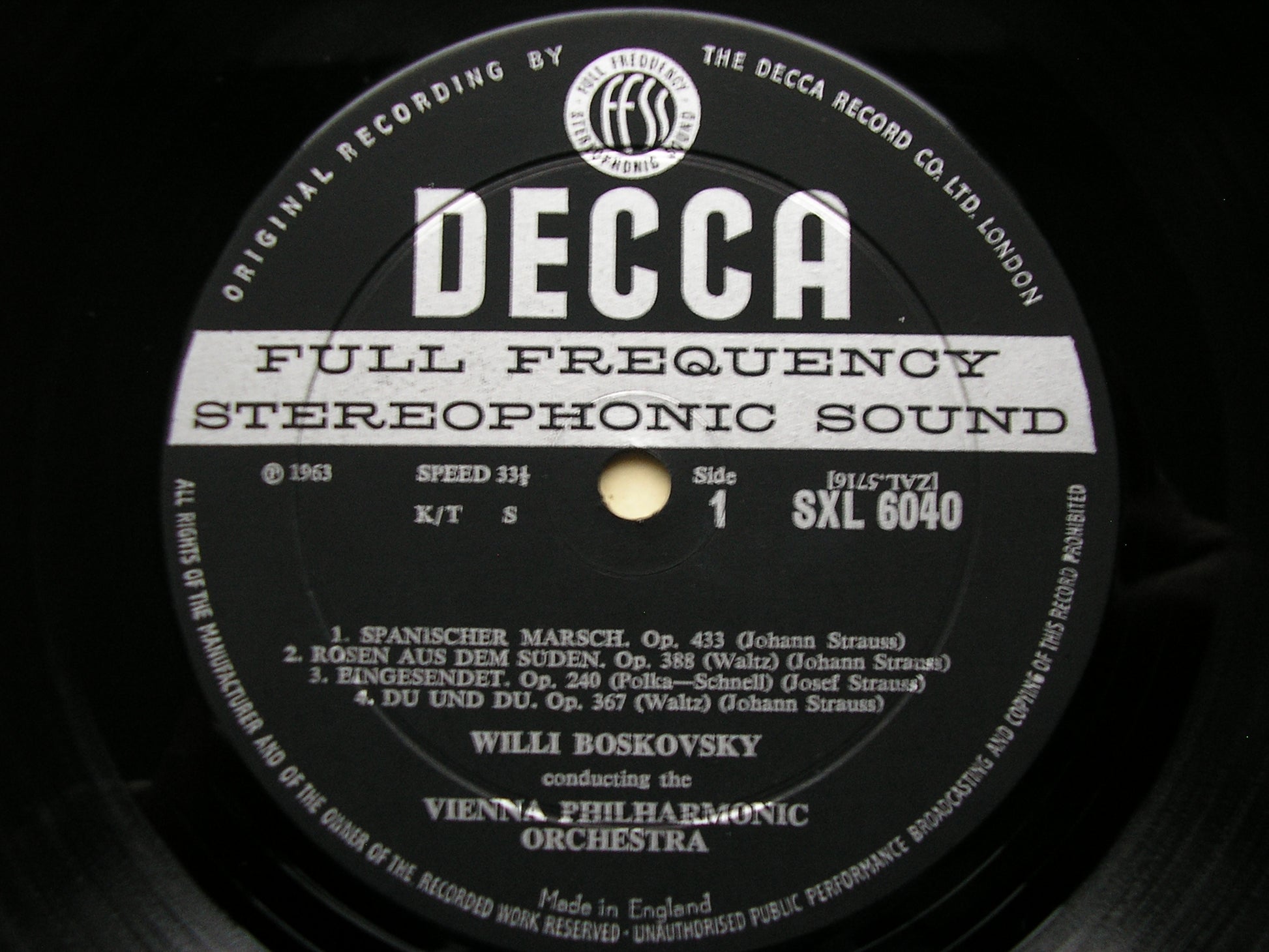 SXL 6040 STRAUSS: THREE WALTZES / FOUR POLKAS /  TWO MARCHES    WILLI BOSKOVSKY / VIENNA PHILHARMONIC ORCHESTRA