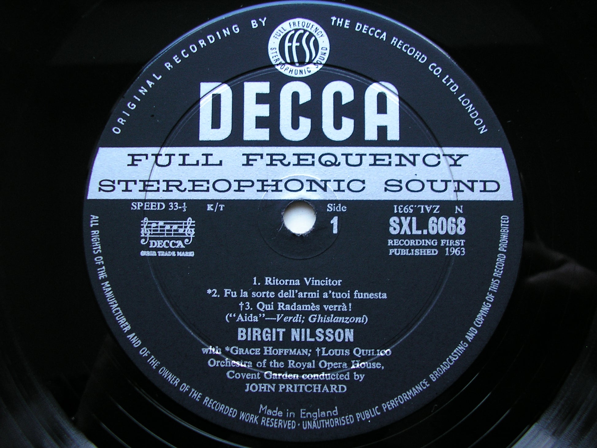 SXL 6068 VERDI: AIDA  excerpts     BIRGIT NILSSON / LUIGI OTTOLINI / LOUIS QUILICO / ORCHESTRA OF THE ROYAL OPERA HOUSE COVENT GARDEN / JOHN PRITCHARD