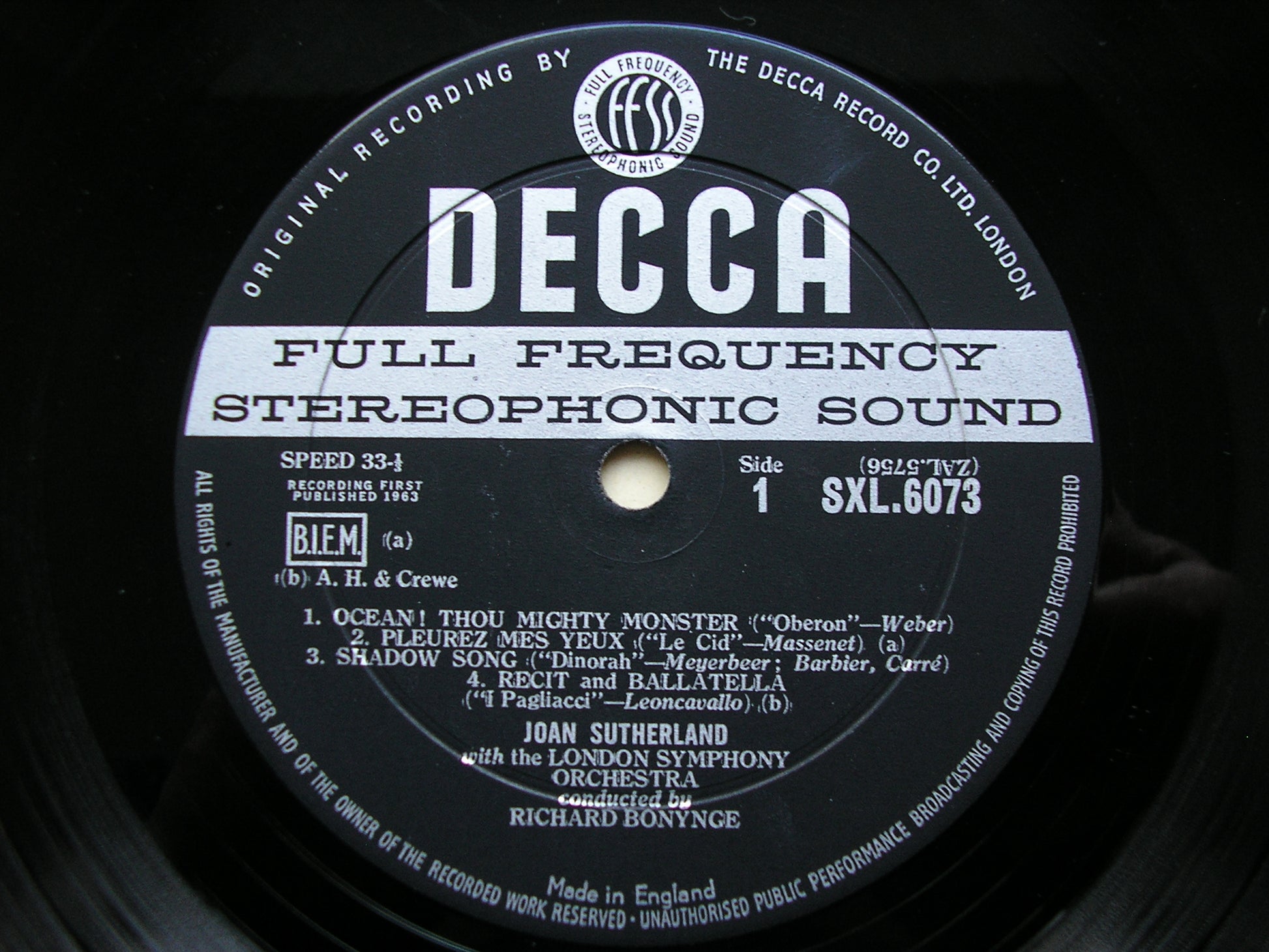 SXL 6073 OPERA ARIAS: WEBER / MEYERBEER / LEONCAVALLO / BELLINI / VERDI / ROSSINI  JOAN SUTHERLAND / LONDON SYMPHONY ORCHESTRA / RICHARD BONYNGE