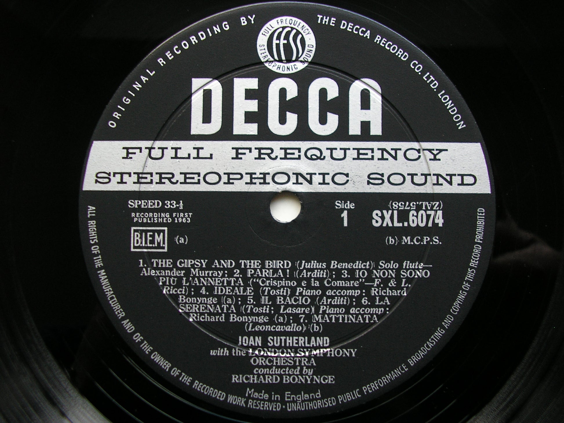SXL 6074 COMMAND PERFORMANCE Volume 2: FLOTOW / RICCI / ARDITI / TOSTI / WALLACE / BALFE / LEONCAVALLO     JOAN SUTHERLAND / LONDON SYMPHONY ORCHESTRA / RICHARD BONYNGE