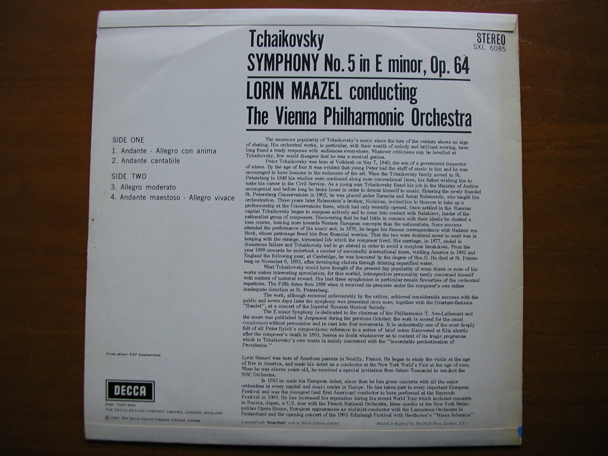SXL 6085 TCHAIKOVSKY: SYMPHONY No. 5    LORIN MAAZEL / VIENNA PHILHARMONIC ORCHESTRA