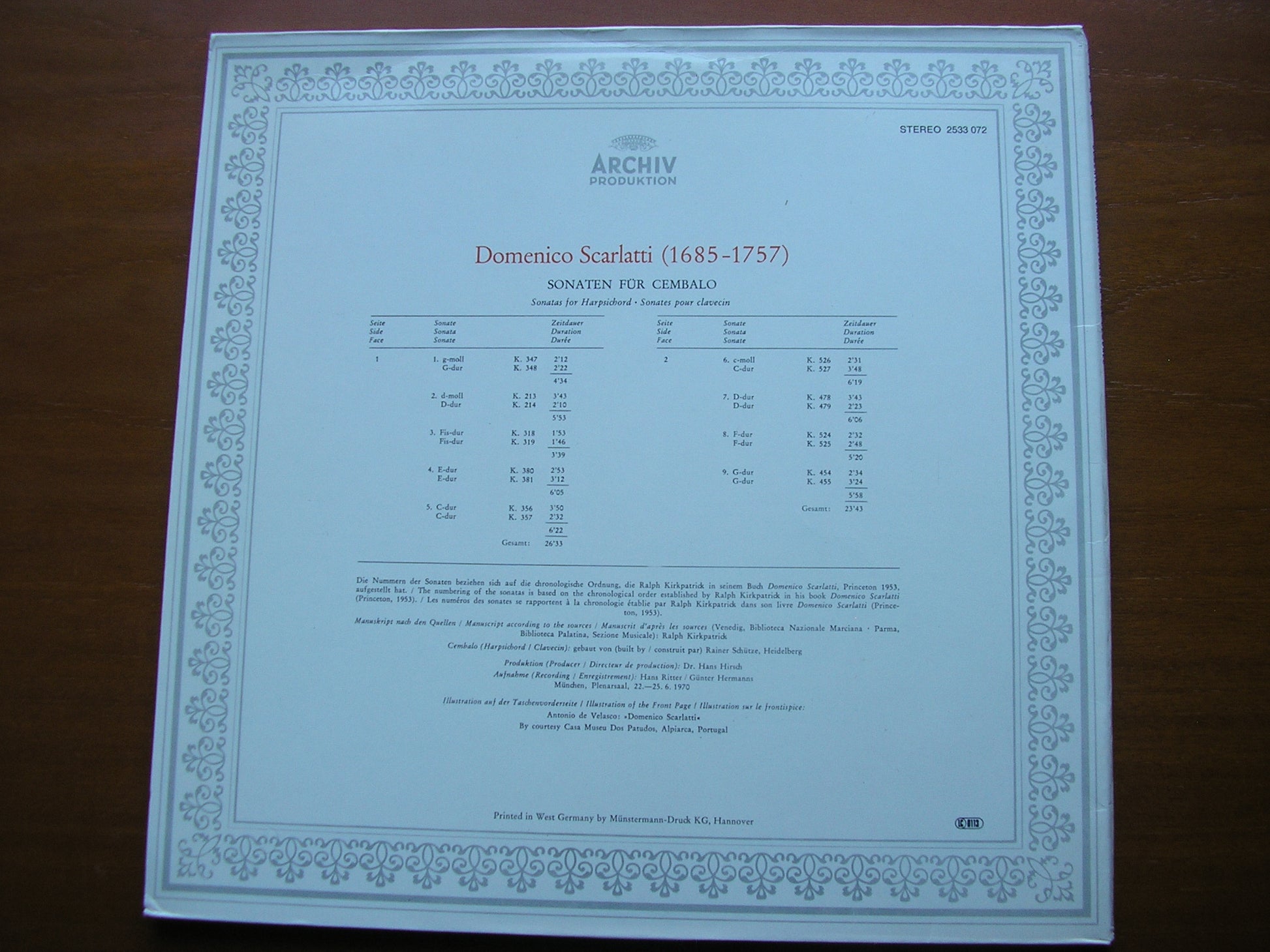 2533 072  SCARLATTI: HARPSICHORD SONATAS    RALPH KIRKPATRICK