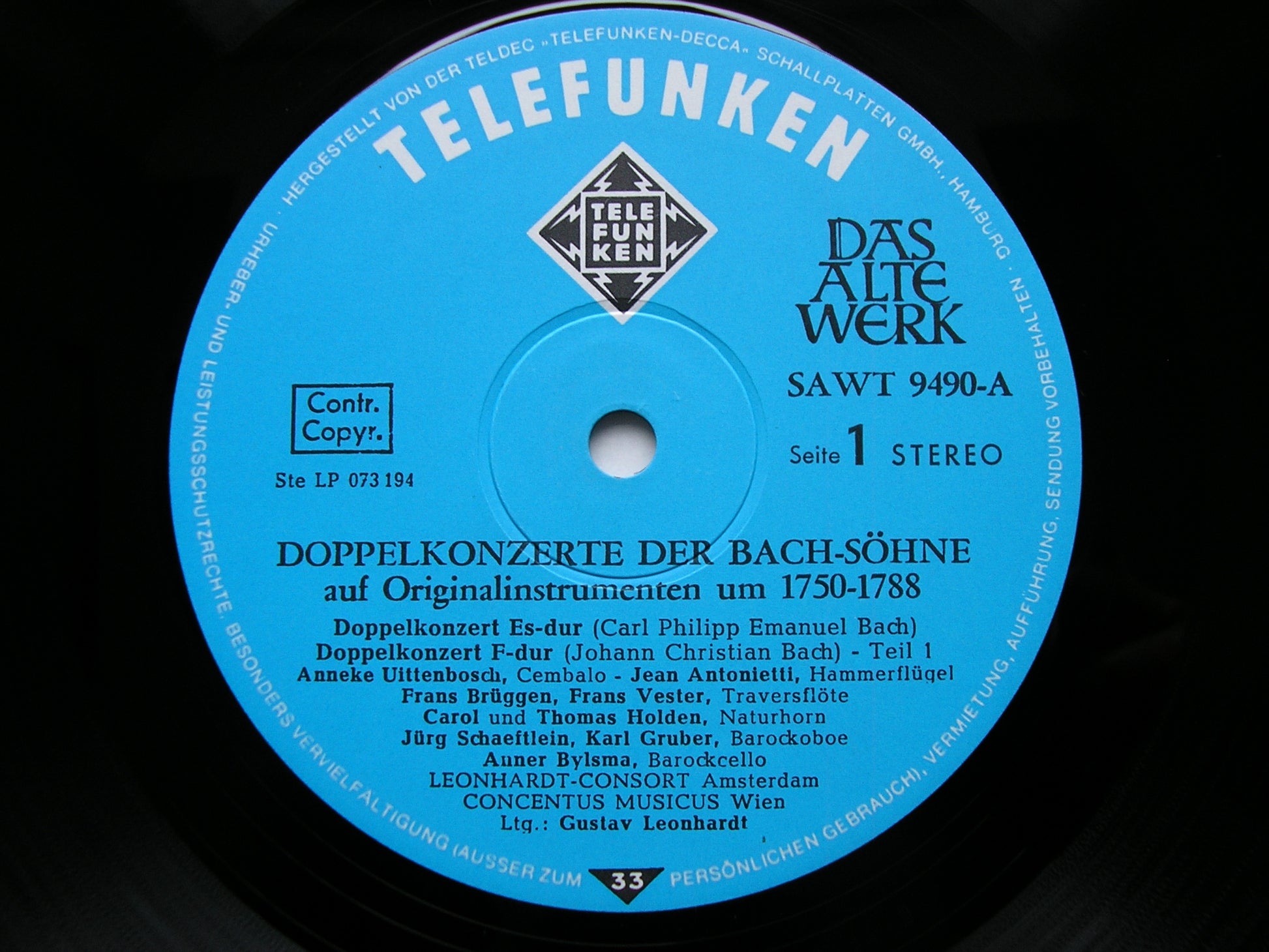 SAWT 9490 CPE BACH / JC BACH / WF BACH: DOUBLE CONCERTOS     LEONHARDT CONSORT / CONCENTUS MUSICUS WIEN / GUSTAV LEONHARDT