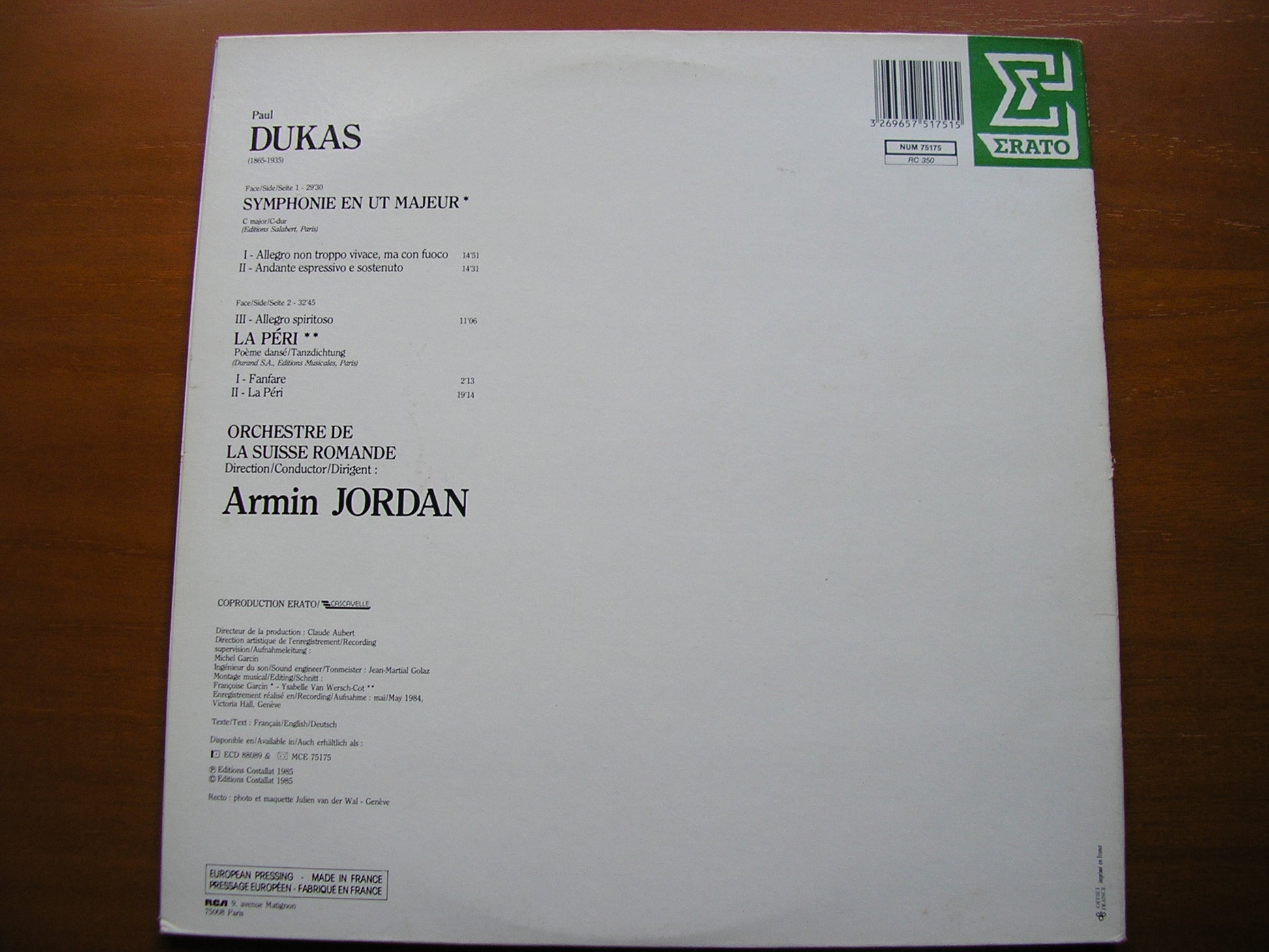 DUKAS: SYMPHONY in C / LA PERI ARMIN JORDAN / SUISSE ROMANDE NUM 75175