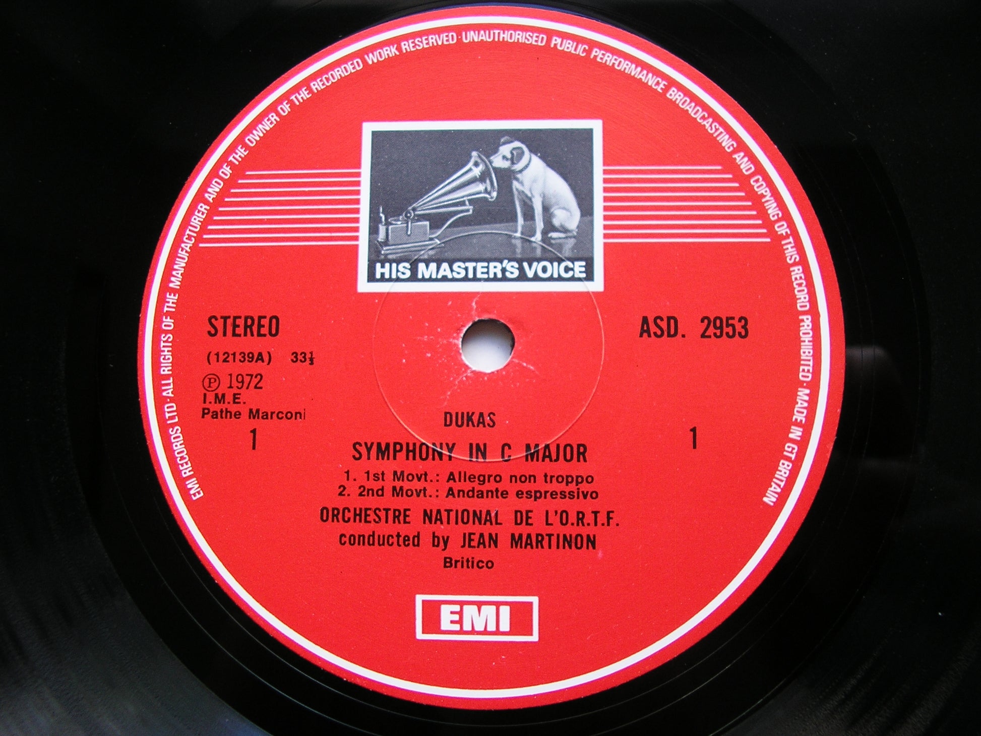 ASD 2953  DUKAS: SYMPHONY in C / HONEGGER: PASTORALE D'ETE     JEAN MARTINON / FRENCH NATIONAL RADIO ORCHESTRA