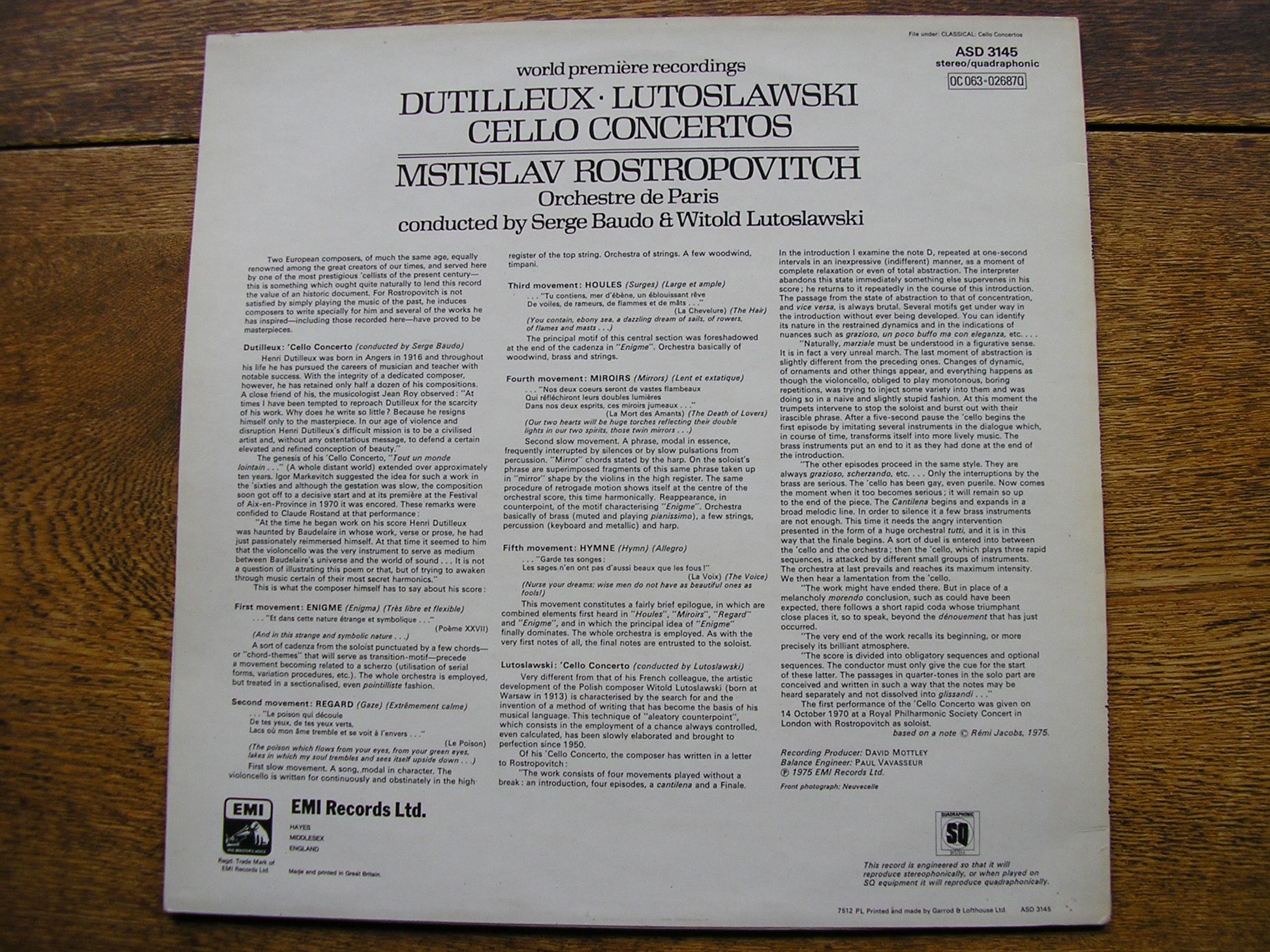 ASD 3145  DUTILLEUX & LUTOSLAWSKI: CELLO CONCERTOS   MSTISLAV ROSTROPOVICH / SERGE BAUDO / WITOLD LUTOSLAWSKI / ORCHESTRE DE PARIS