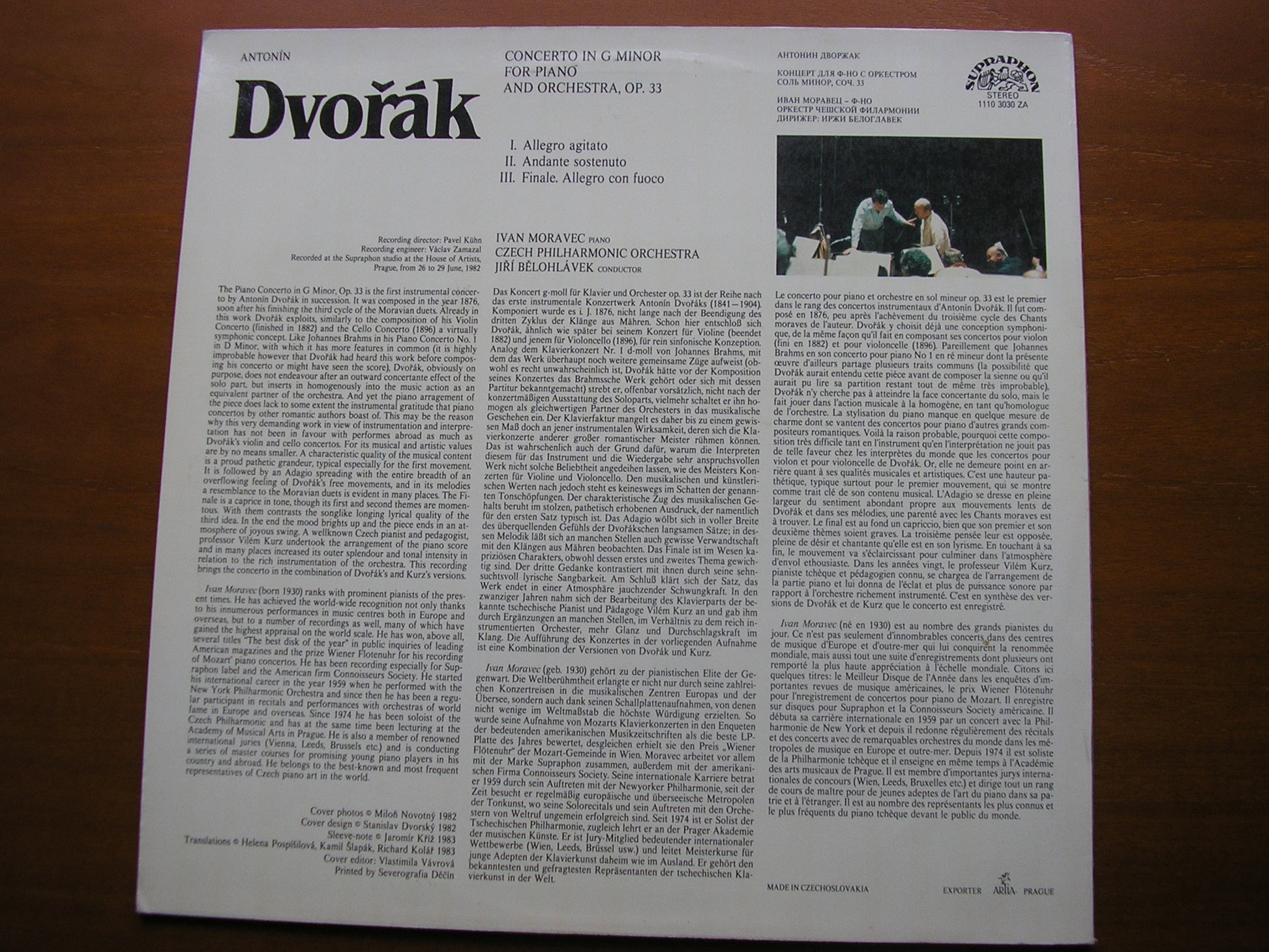DVORAK: PIANO CONCERTO MORAVEC / CZECH PHILHARMONIC / BELOHLAVEK 1110 3030 ZA
