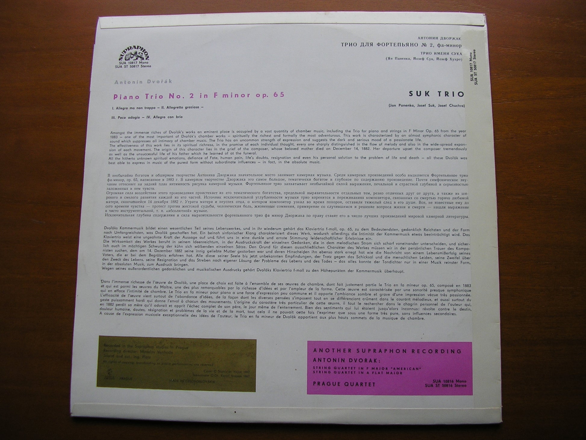 DVORAK: PIANO TRIO in F Op. 65 THE SUK TRIO SUA ST 50817